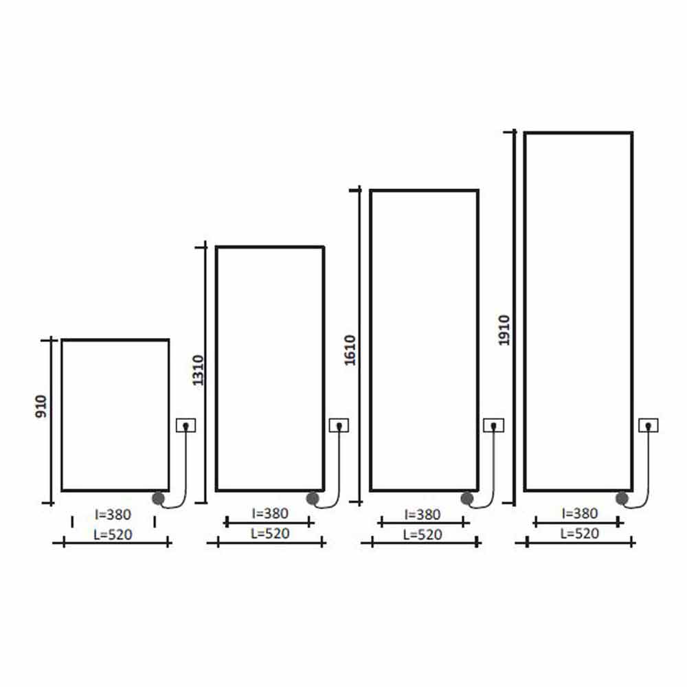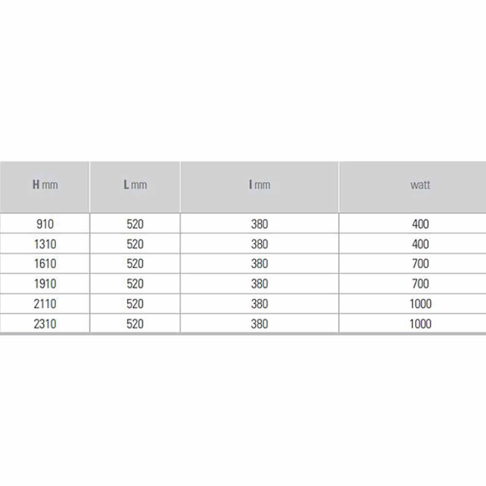 - H 2200 x L 520 x Inter. 450 x P 65 mm x Output w 1000