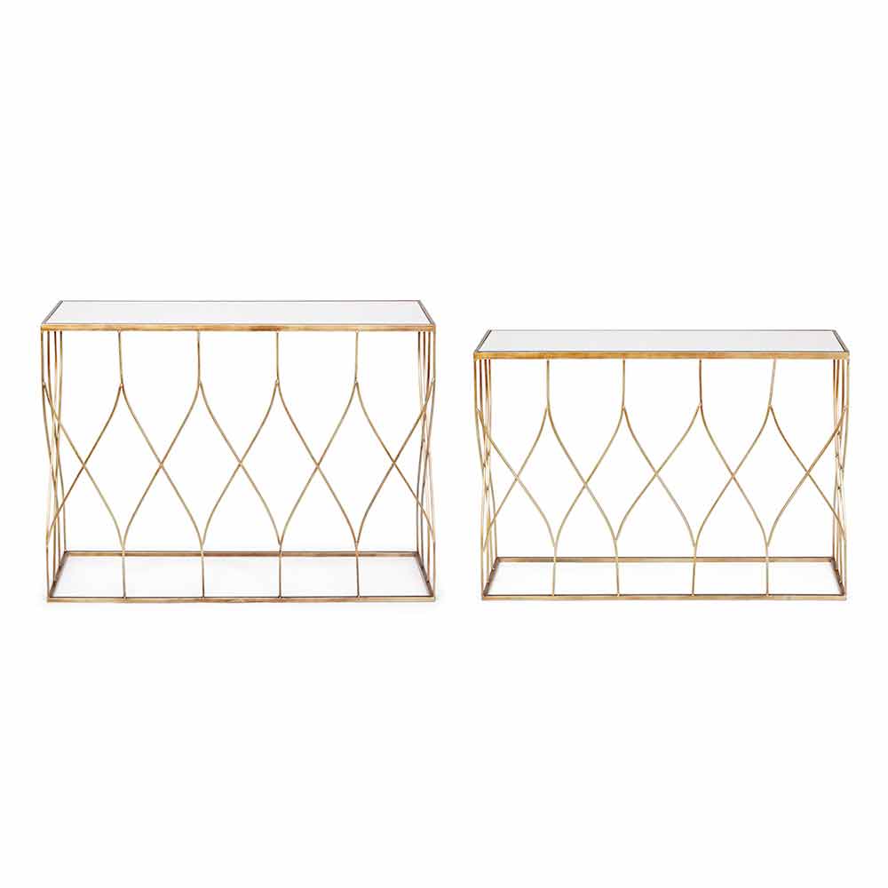 2 Modern consoles with a rectangular design in steel and glass, elegant and luxurious.