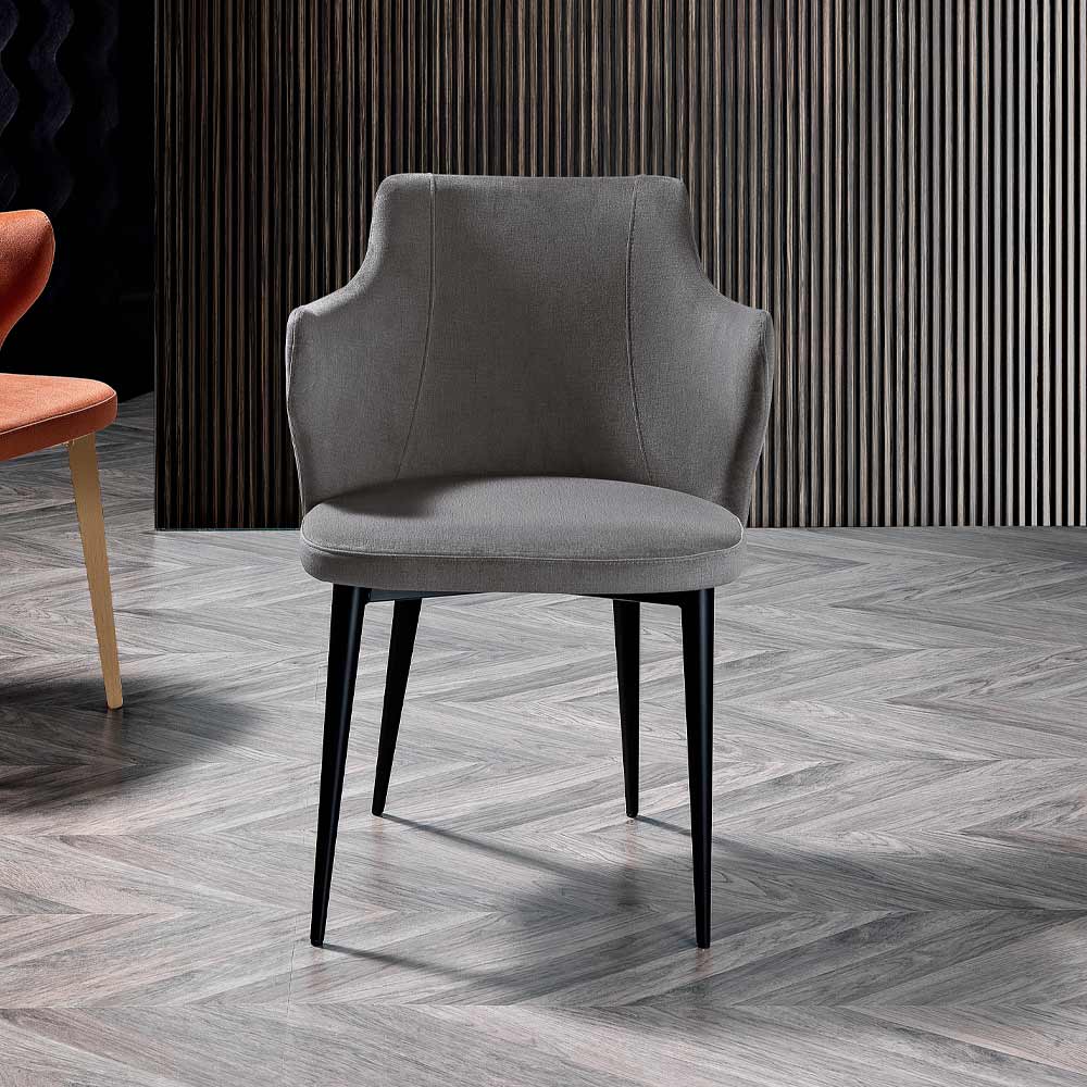 Transform your dining room into a more comfortable and elegant space with the modern armchair with a seat covered in easy-to-clean crystal fabric and available in different colour variants: