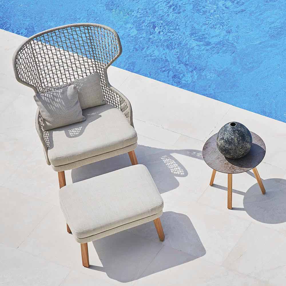 Varaschin Emma outdoor footrest in upholstered fabric and iroko wood