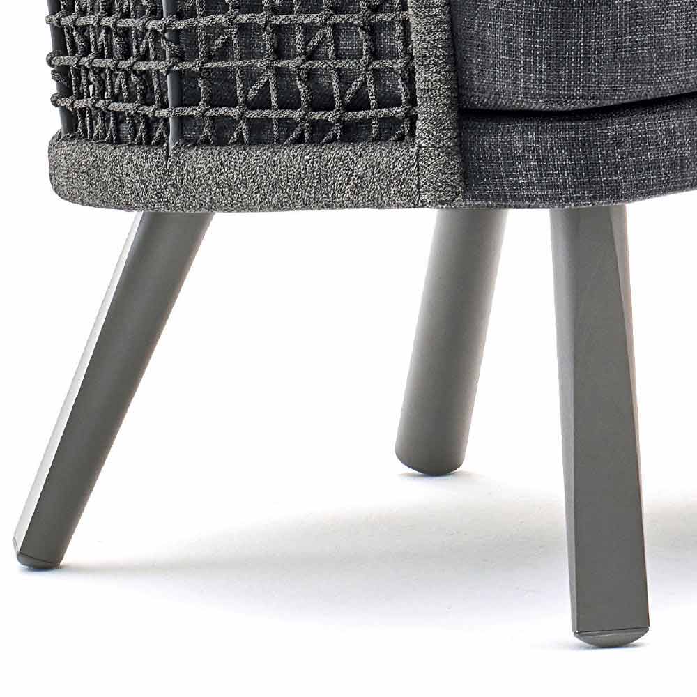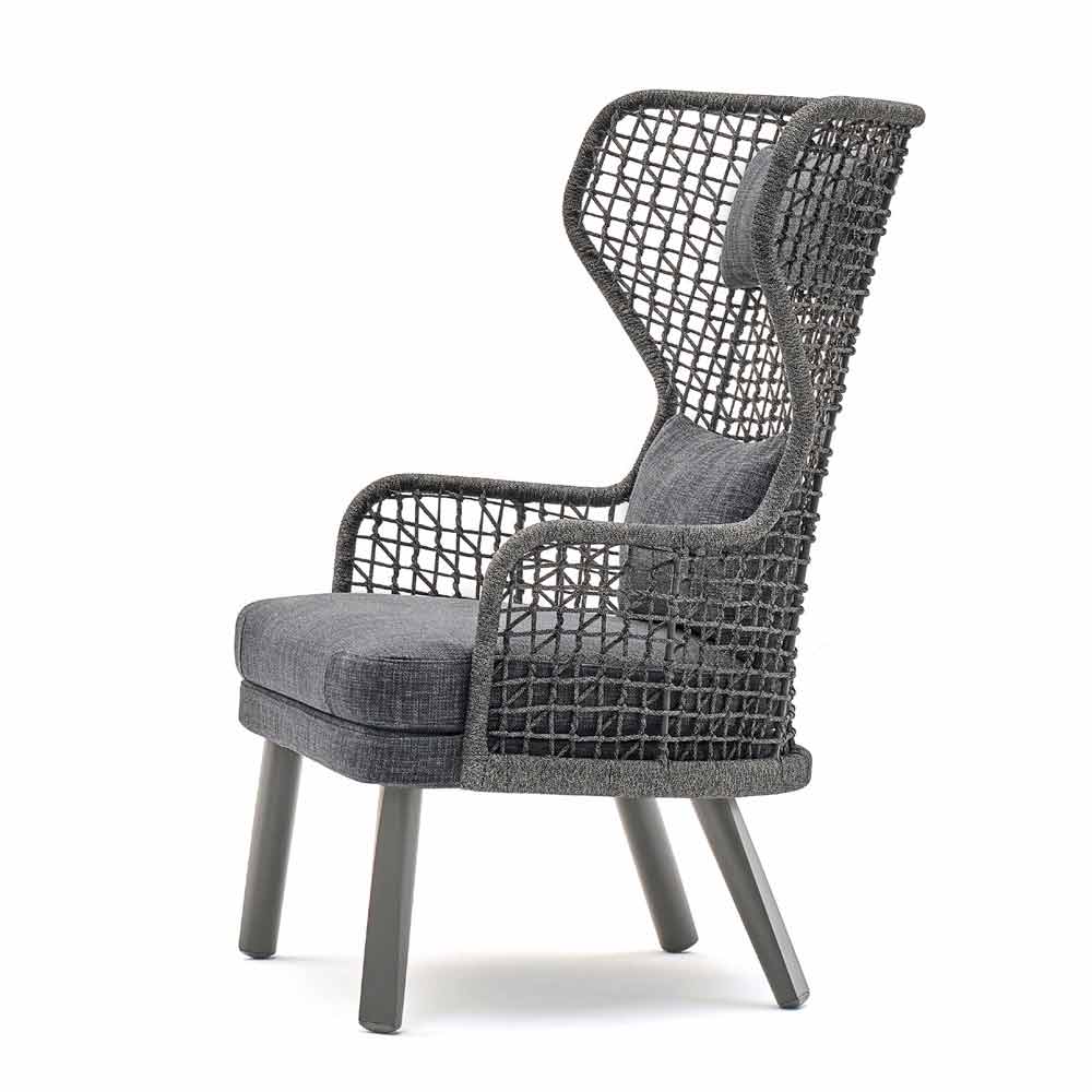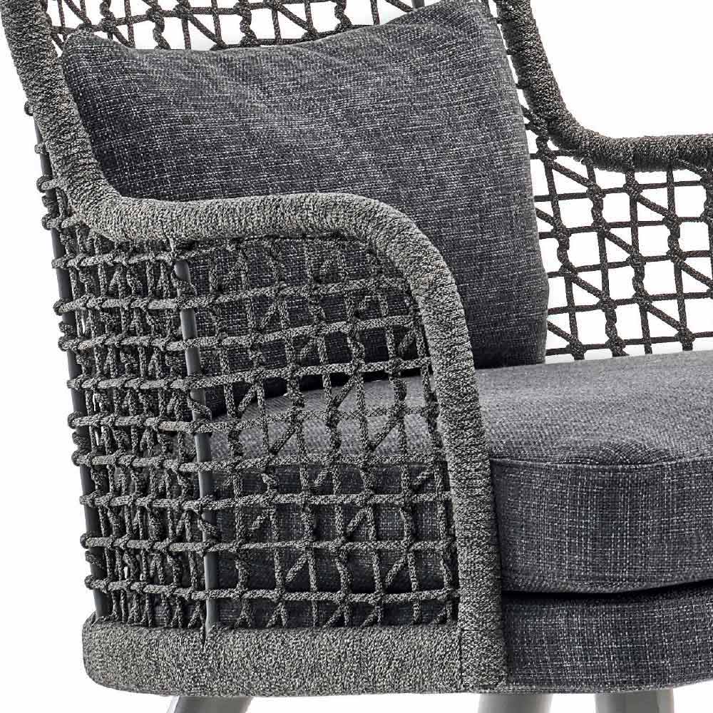 Emma is a magnificent garden armchair featuring a structure made of hand-woven synthetic fibre with a dark gray powder-coated aluminium frame.