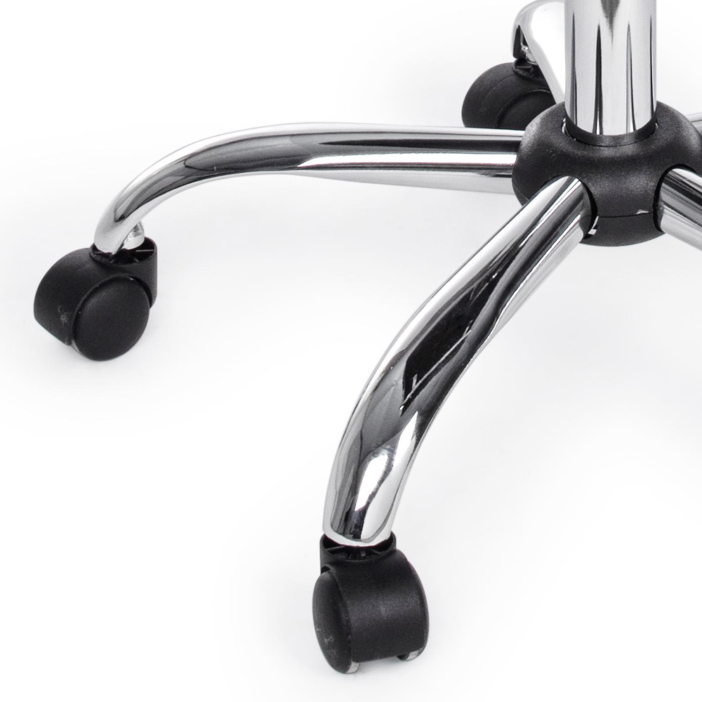 This office armchair is made with a solid base in chromed steel with a diameter of 56 cm and nylon wheels .
