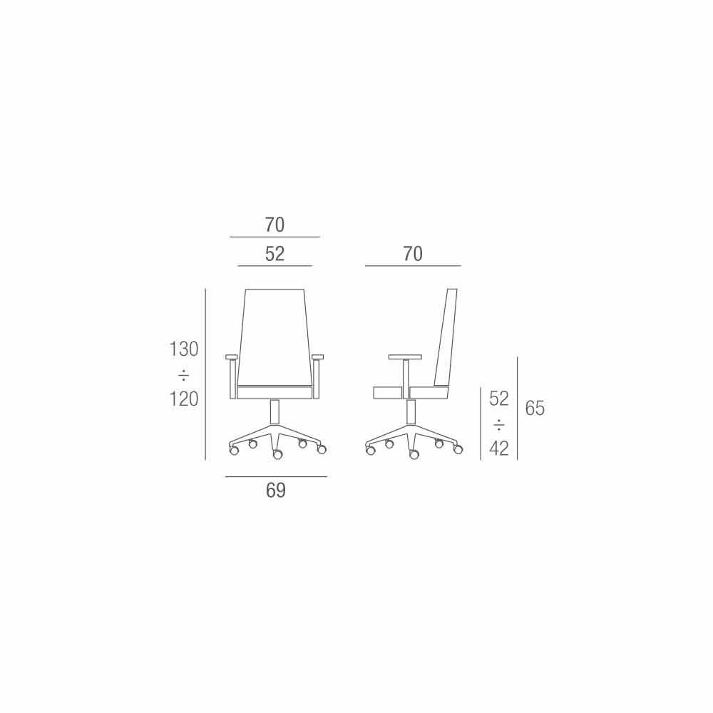 The 5-star base is made of polished die-cast aluminium, complete with braked Ø 50 mm nylon wheels.