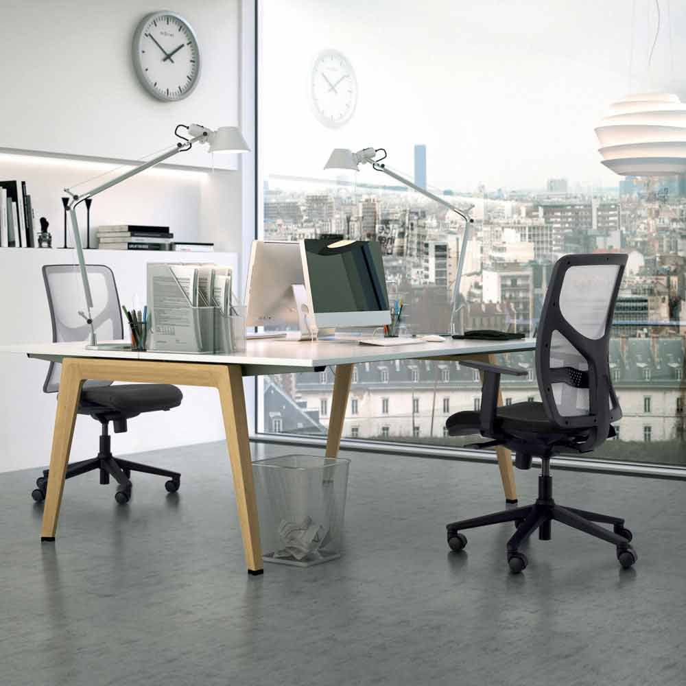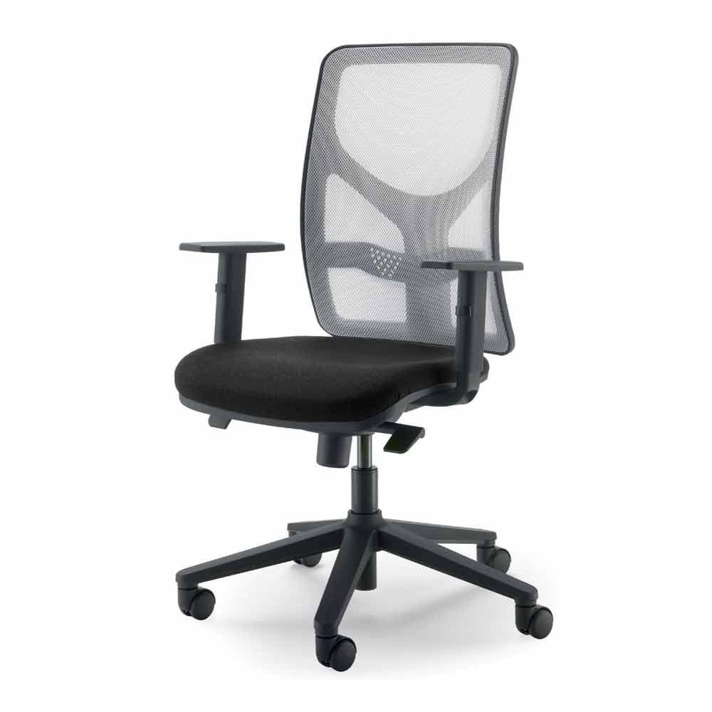 Equipped with a synchronized two-lever steel backrest / seat mechanism, with 4 locking positions, spring tension adjustment for setting the swing by means of a knob and anti-shock backrest safety system.