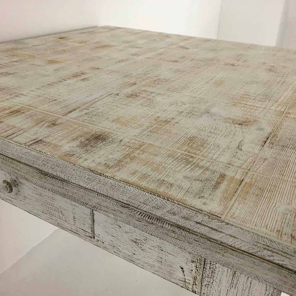 Dining table handcrafted in Italy with solid fir wood structure complete with practical side drawer and top and extension in triple crossed layer of 27 mm specially designed to avoid cracks that wood, being a living material, could create over time.