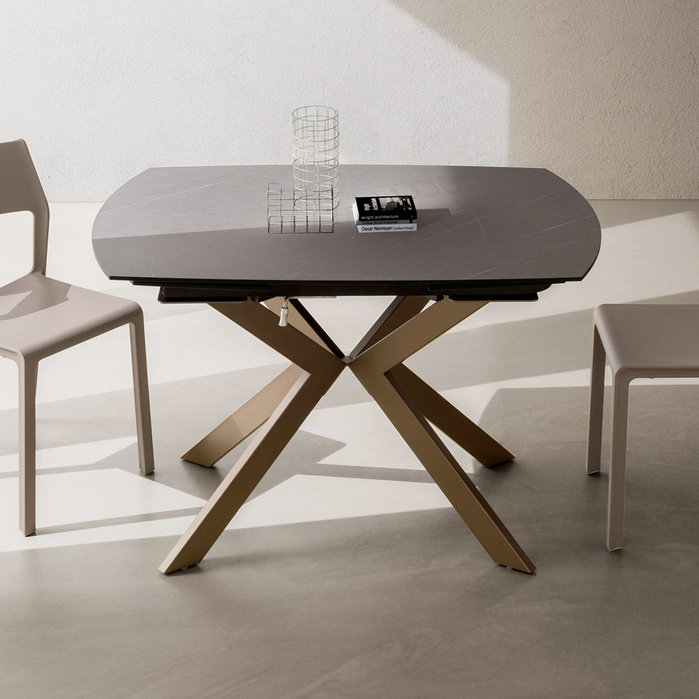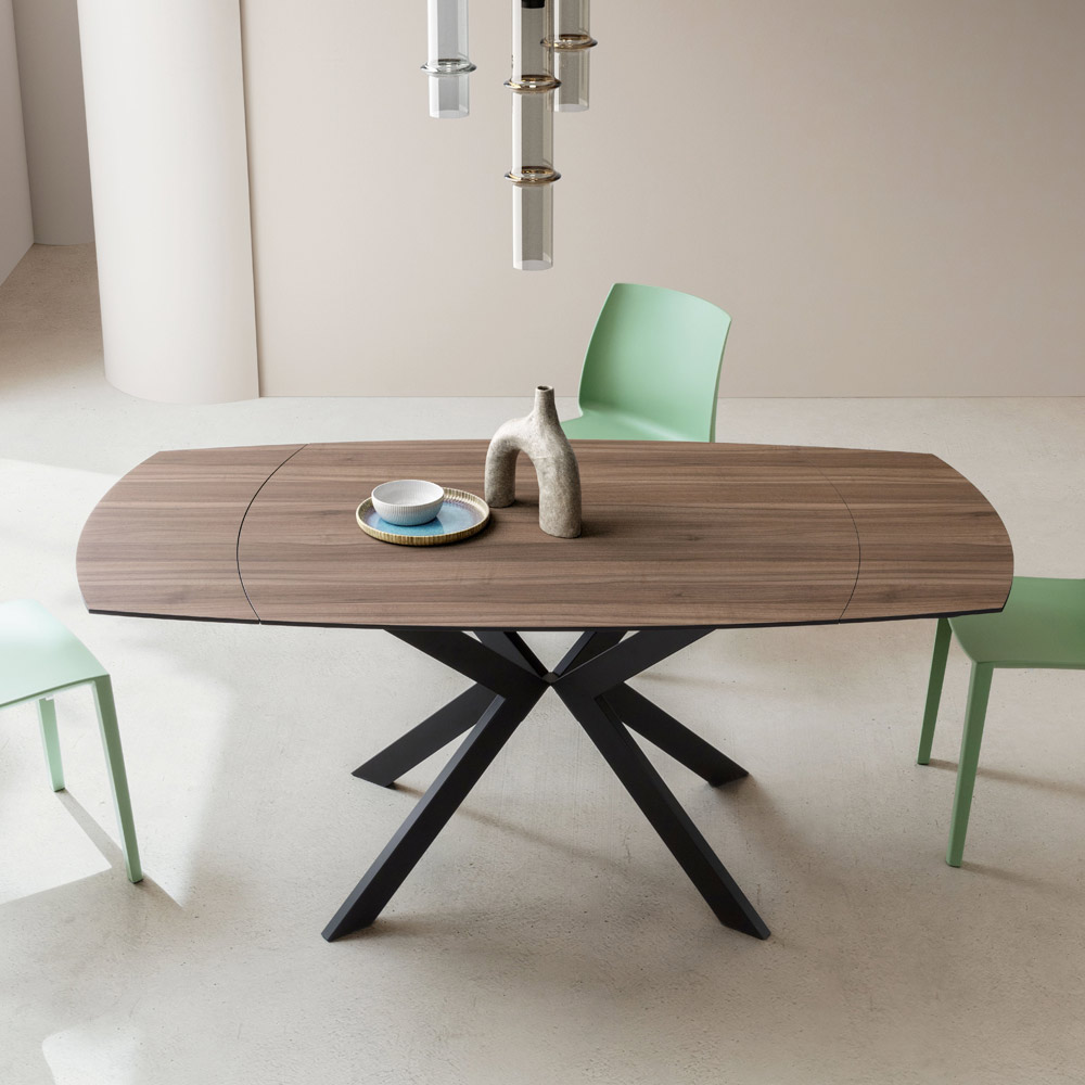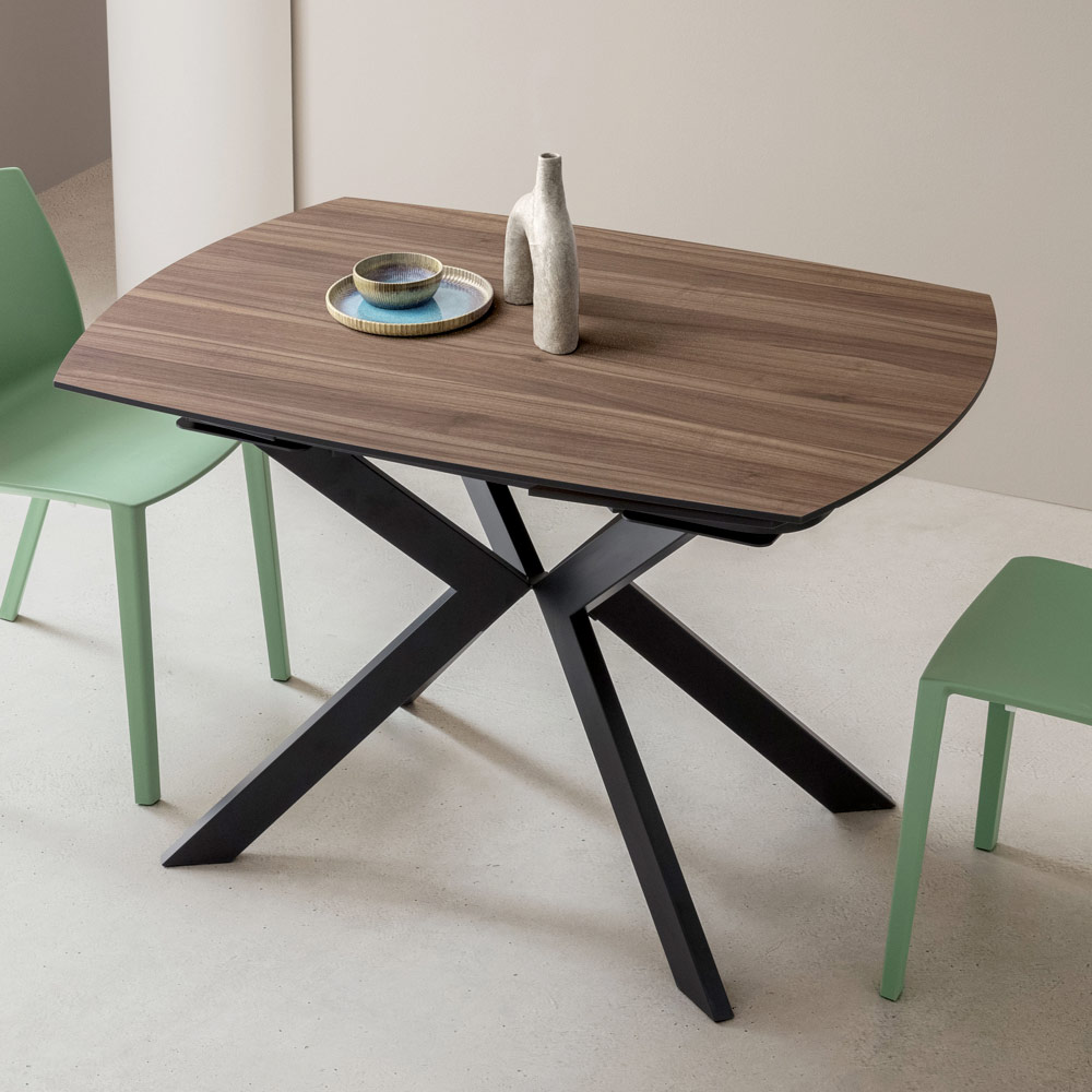 The painted metal base, with star-shaped crossed legs , gives solidity and character, transforming the table into a true protagonist of the space.