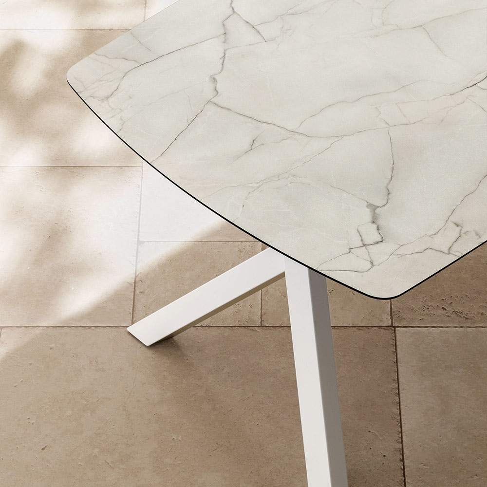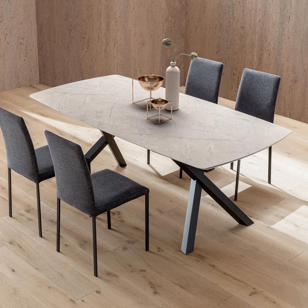 The painted metal structure, with crossed legs with a strong visual impact, gives stability, robustness and architectural style , making this table perfect for modern, elegant and open space environments.