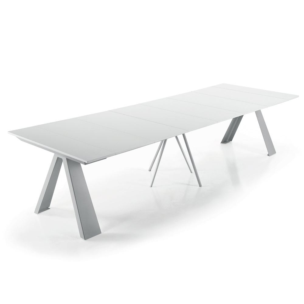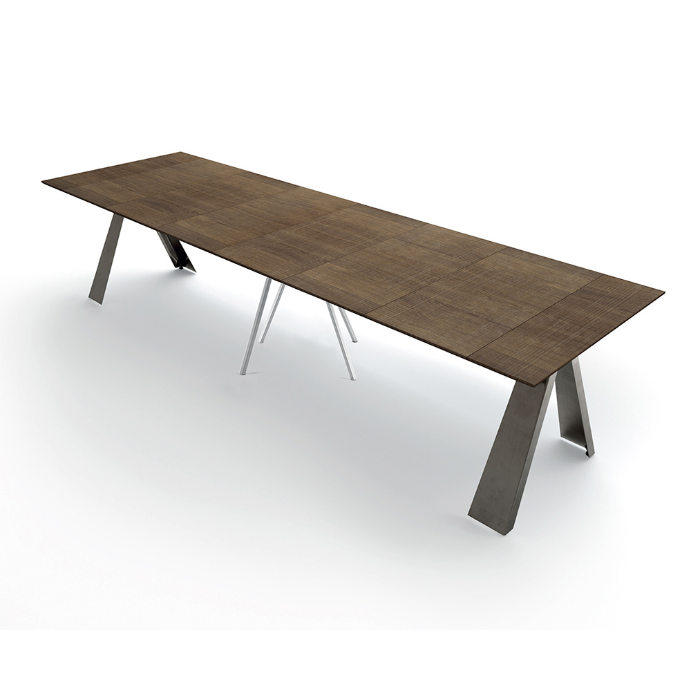 Design console extendable up to 14 seats in laminated wood and steel made in Italy.