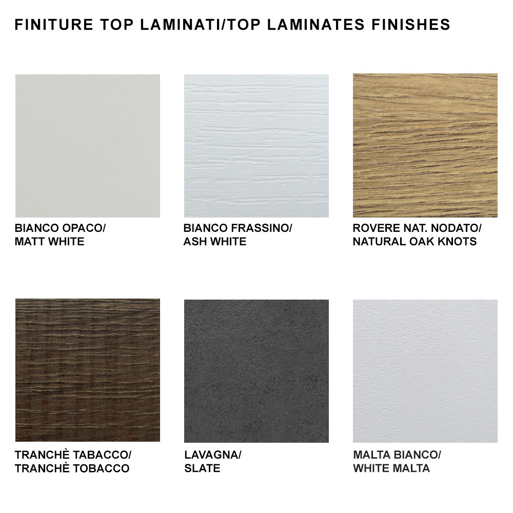 - matt white lacquered laminate top - thickness 20 mm;