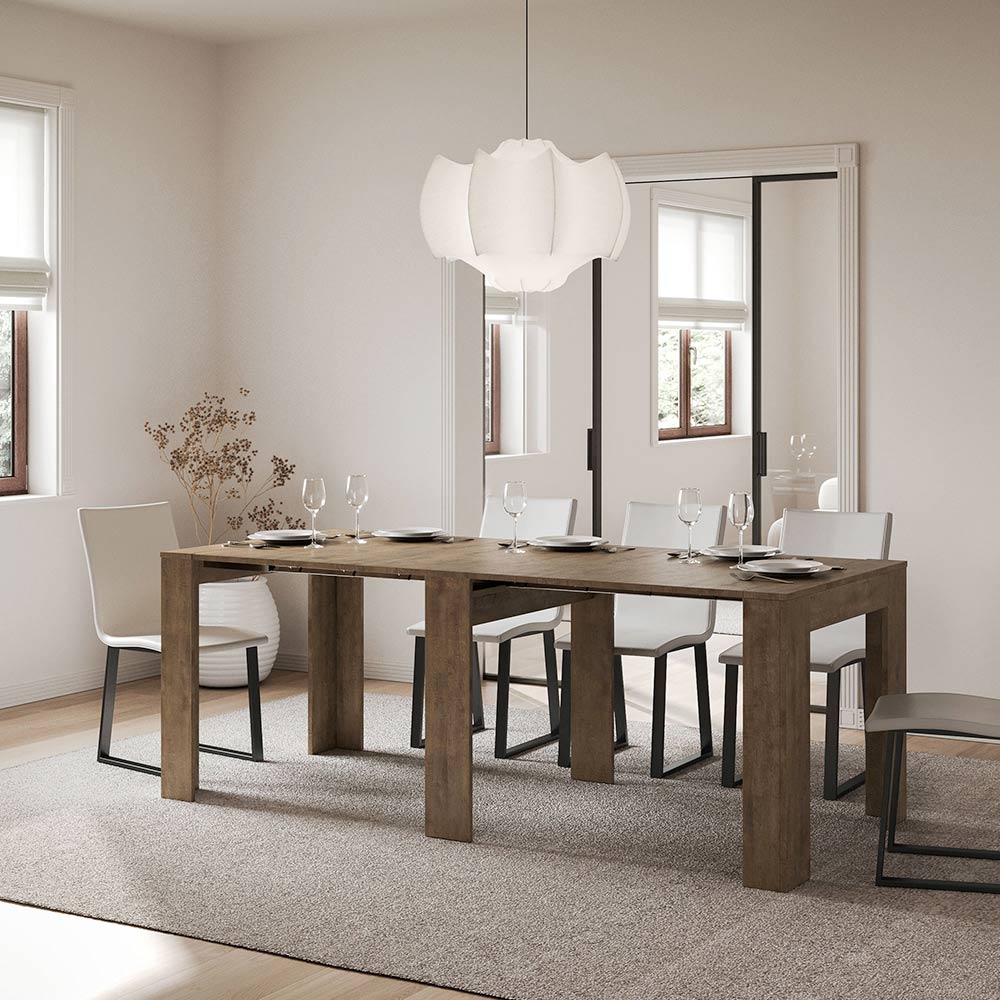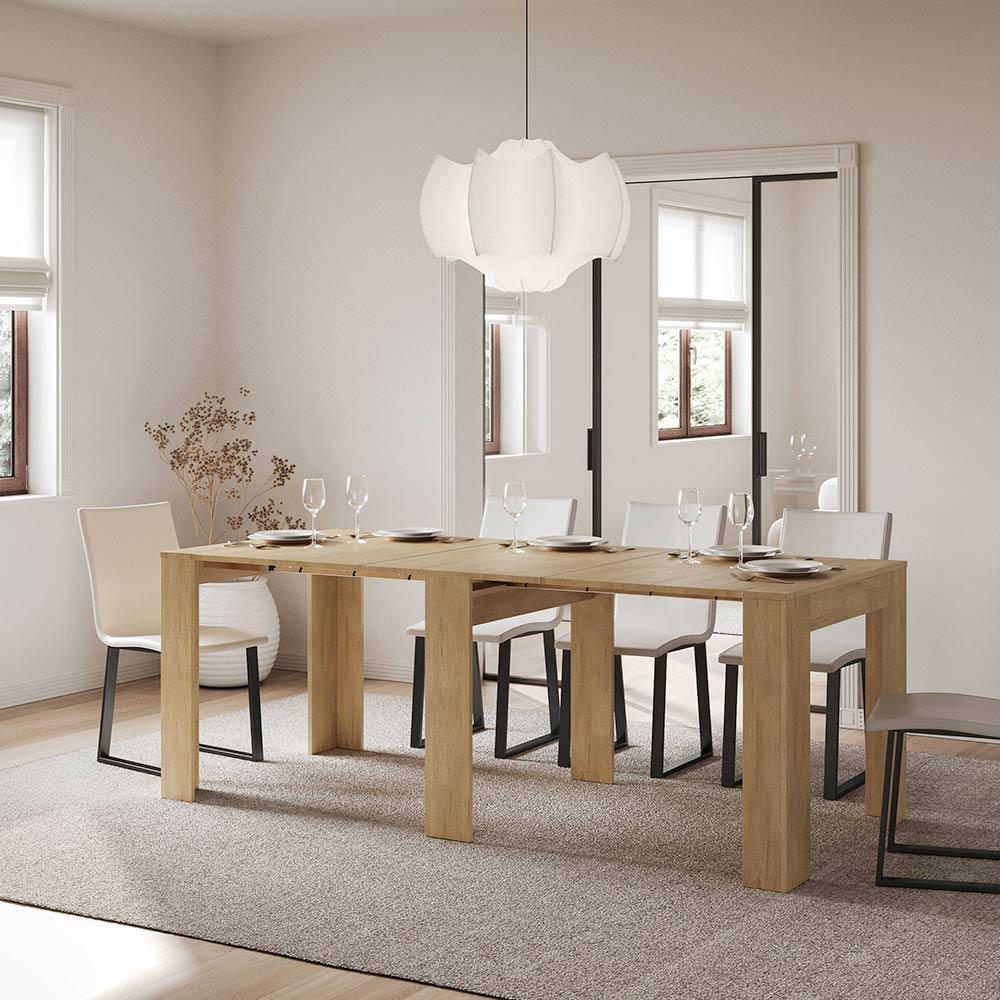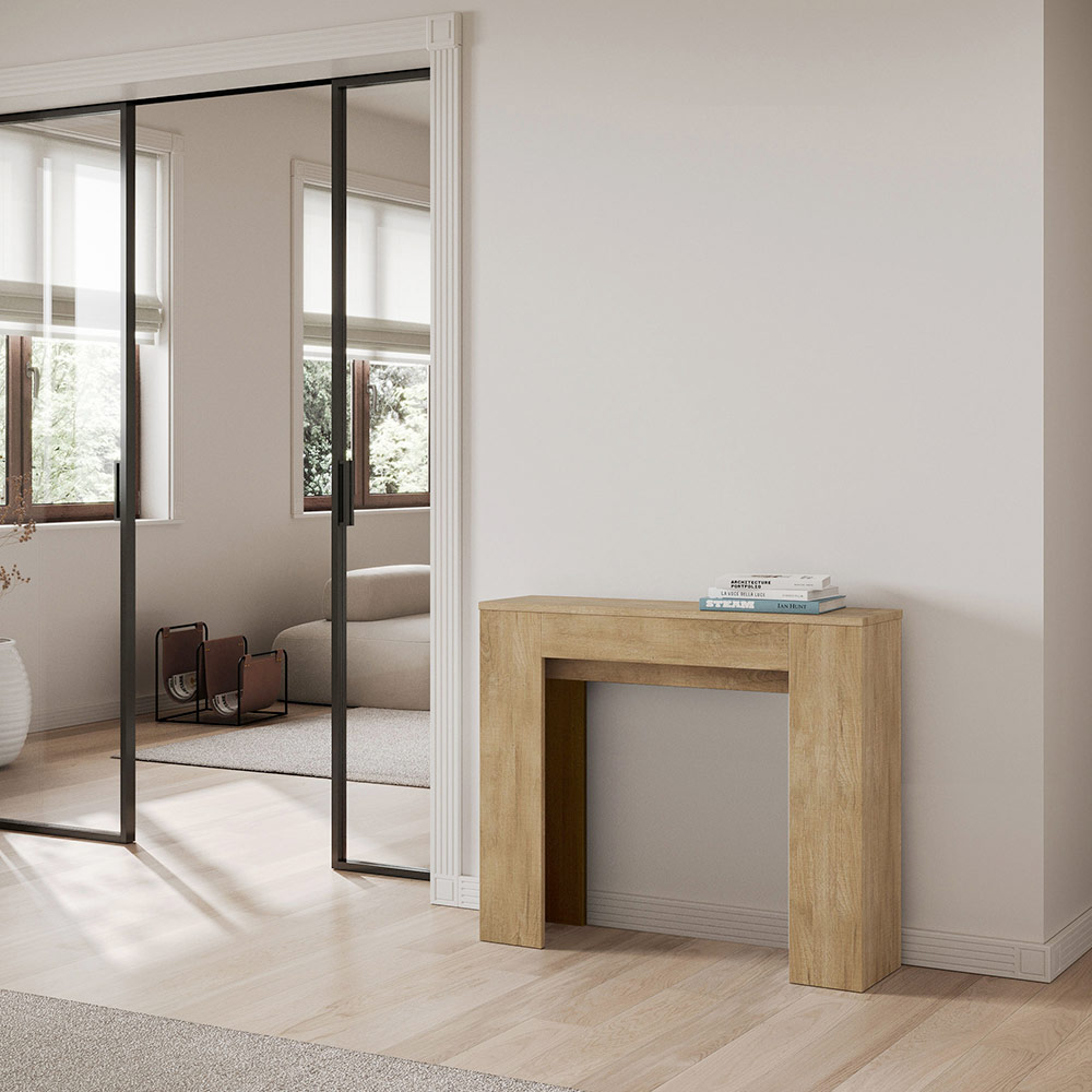 This extendable console tableĀ ĆØ the epitome of functional and minimalist design. Its sleek shape and clean queues make it a versatile piece of furniture, ideal for any space from the entryway to the lounge, offering an image of space and order.Ā The console table expands with ease, transforming from a discreet piece of furniture to a practical dining table, perfect for hosting chinas and family on special occasions. This versatility makes it an ideal choice for those who live in small spaces but do not want to sacrifice functionality and style.
