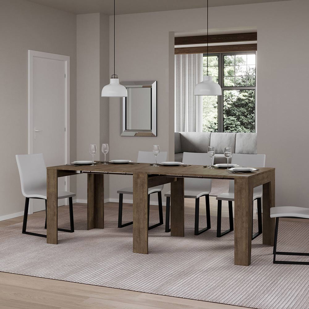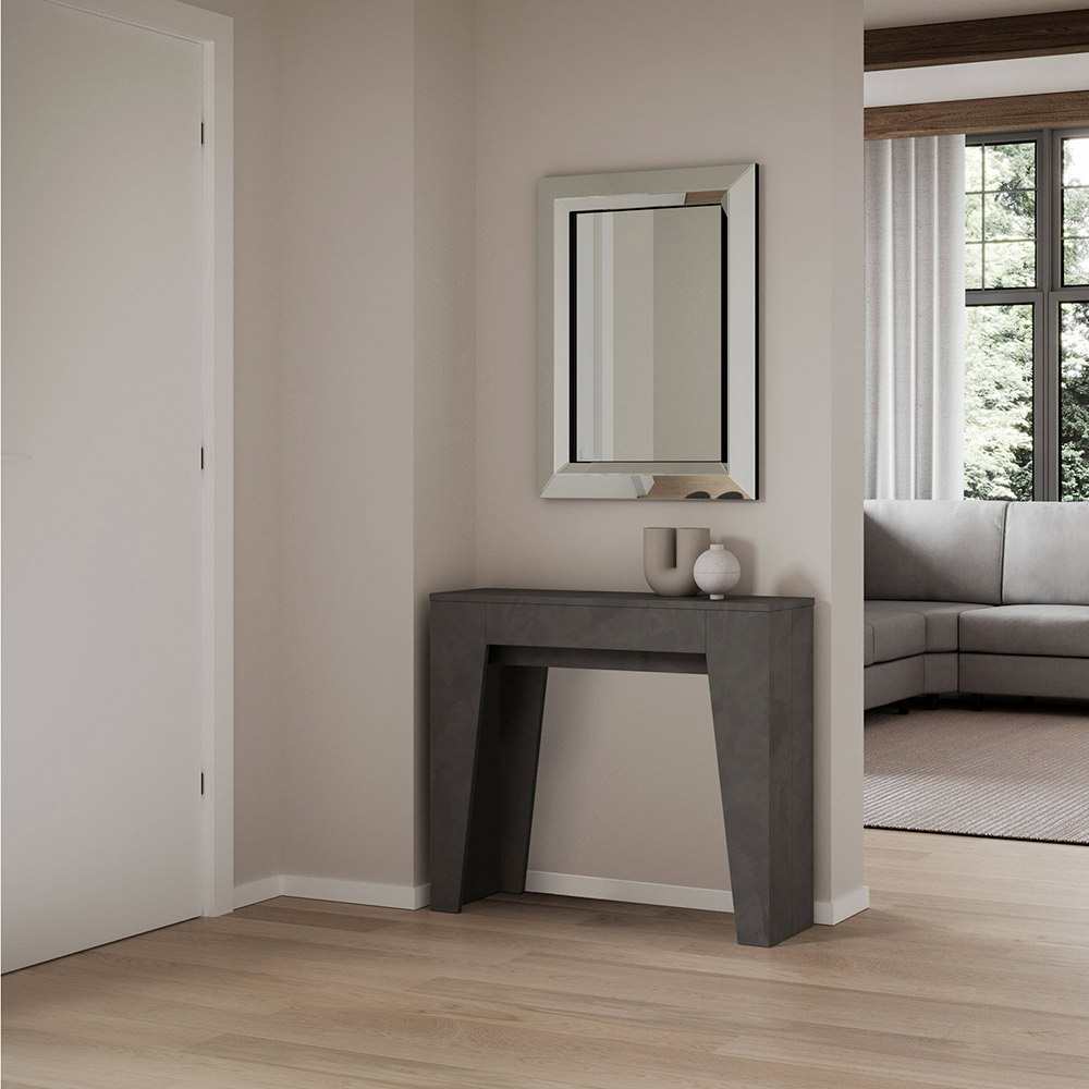 This extendable console table è the epitome of functional and minimalist design. Its sleek shape and clean queues make it a versatile piece of furniture, ideal for any space from the entryway to the lounge, offering an image of space and order. The console table expands with ease, transforming from a discreet piece of furniture to a practical dining table, perfect for hosting chinas and family on special occasions. This versatility makes it an ideal choice for those who live in small spaces but do not want to sacrifice functionality and style.