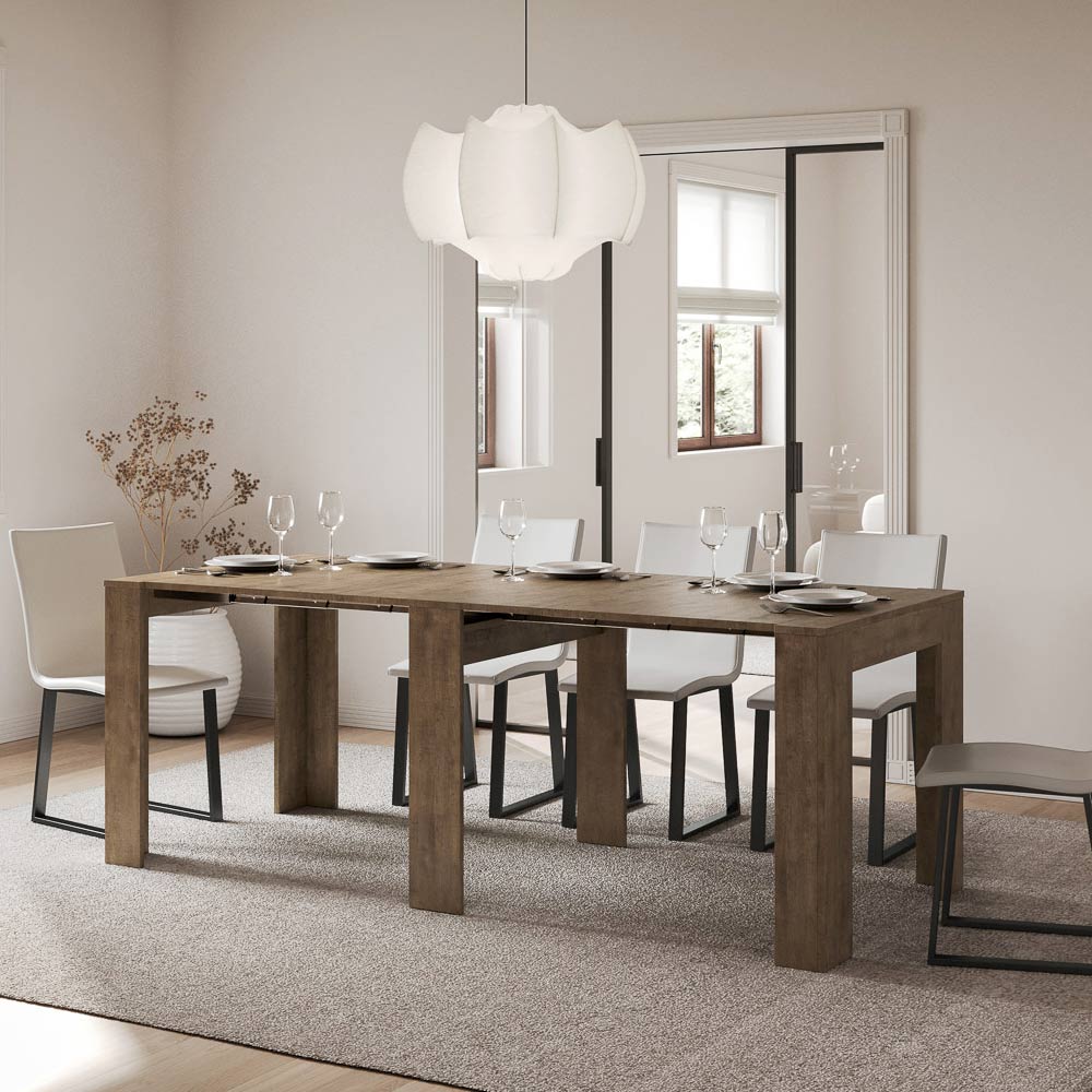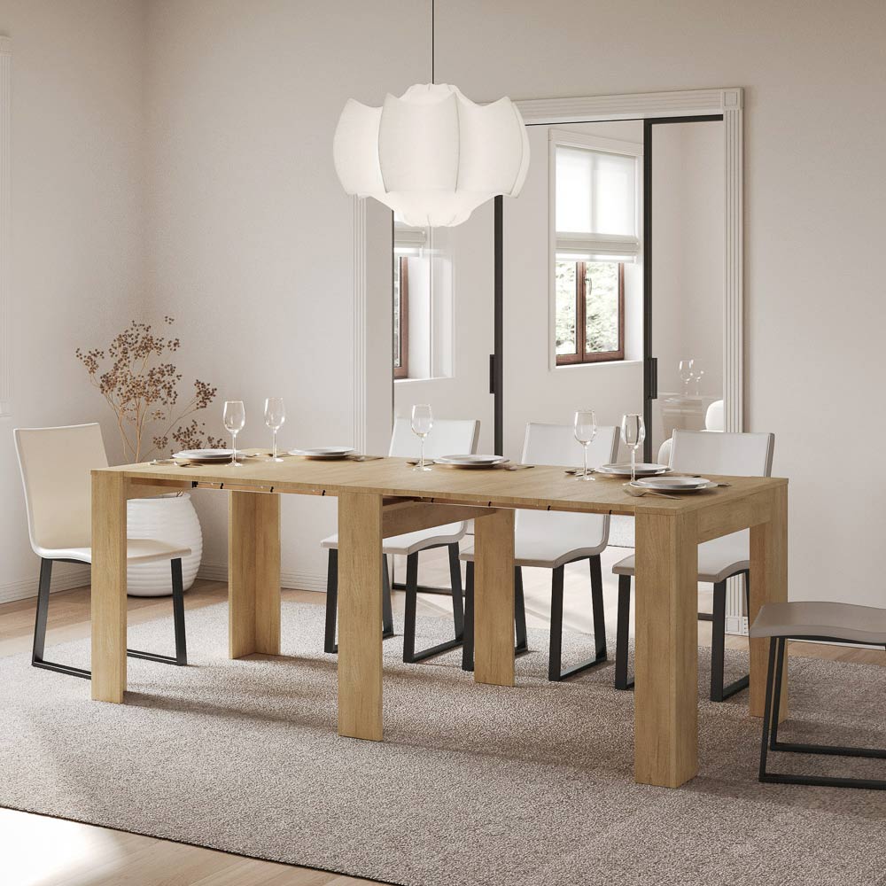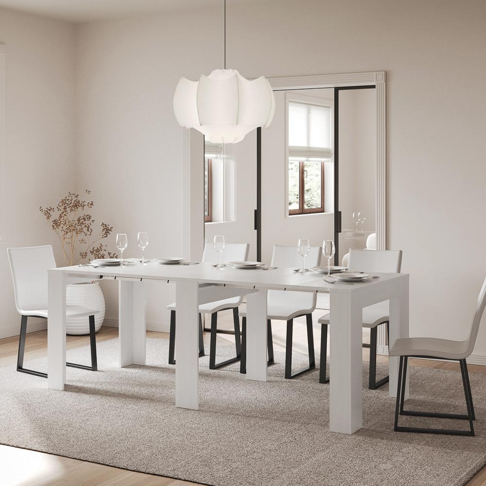 This extendable console tableĀ ĆØ the epitome of functional and minimalist design. Its sleek shape and clean queues make it a versatile piece of furniture, ideal for any space from the entryway to the lounge, offering an image of space and order.Ā The console table expands with ease, transforming from a discreet piece of furniture to a practical dining table, perfect for hosting chinas and family on special occasions. This versatility makes it an ideal choice for those who live in small spaces but do not want to sacrifice functionality and style.