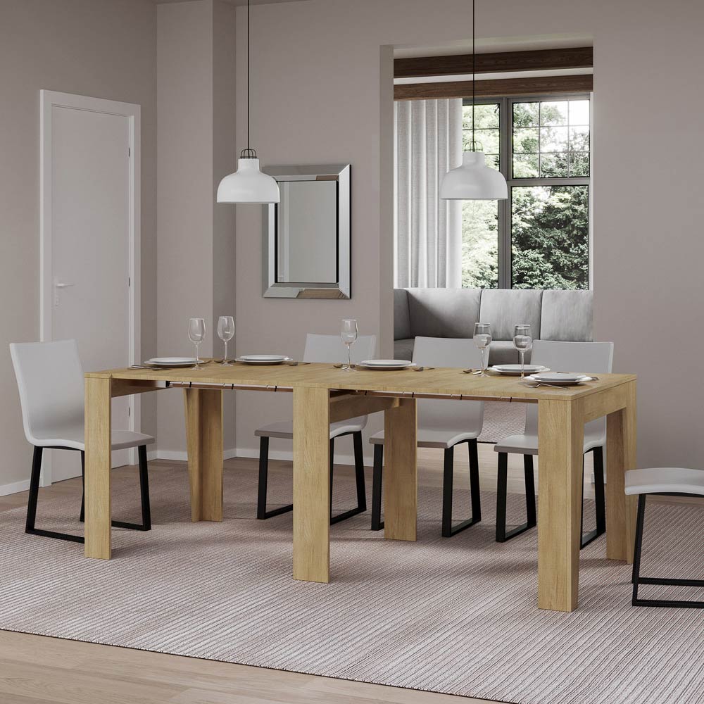 This extendable console tableĀ ĆØ the epitome of functional and minimalist design. Its sleek shape and clean queues make it a versatile piece of furniture, ideal for any space from the entryway to the lounge, offering an image of space and order.Ā The console table expands with ease, transforming from a discreet piece of furniture to a practical dining table, perfect for hosting chinas and family on special occasions. This versatility makes it an ideal choice for those who live in small spaces but do not want to sacrifice functionality and style.