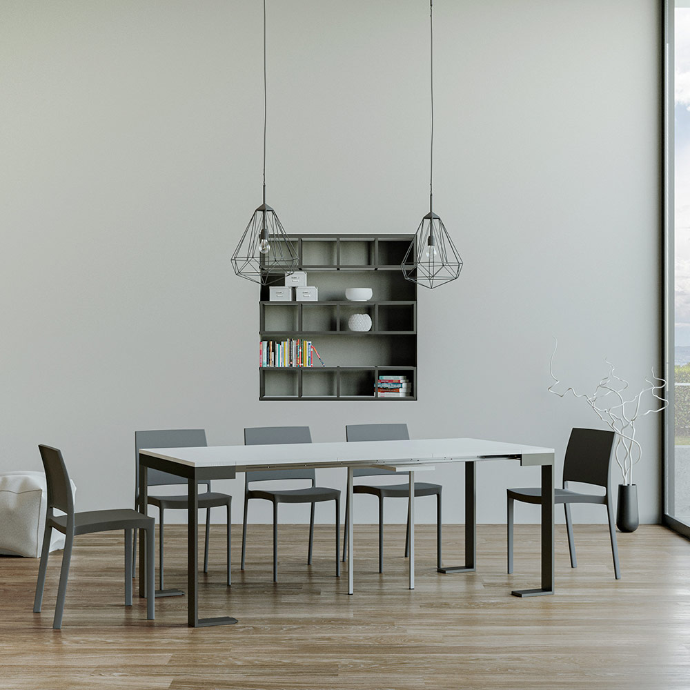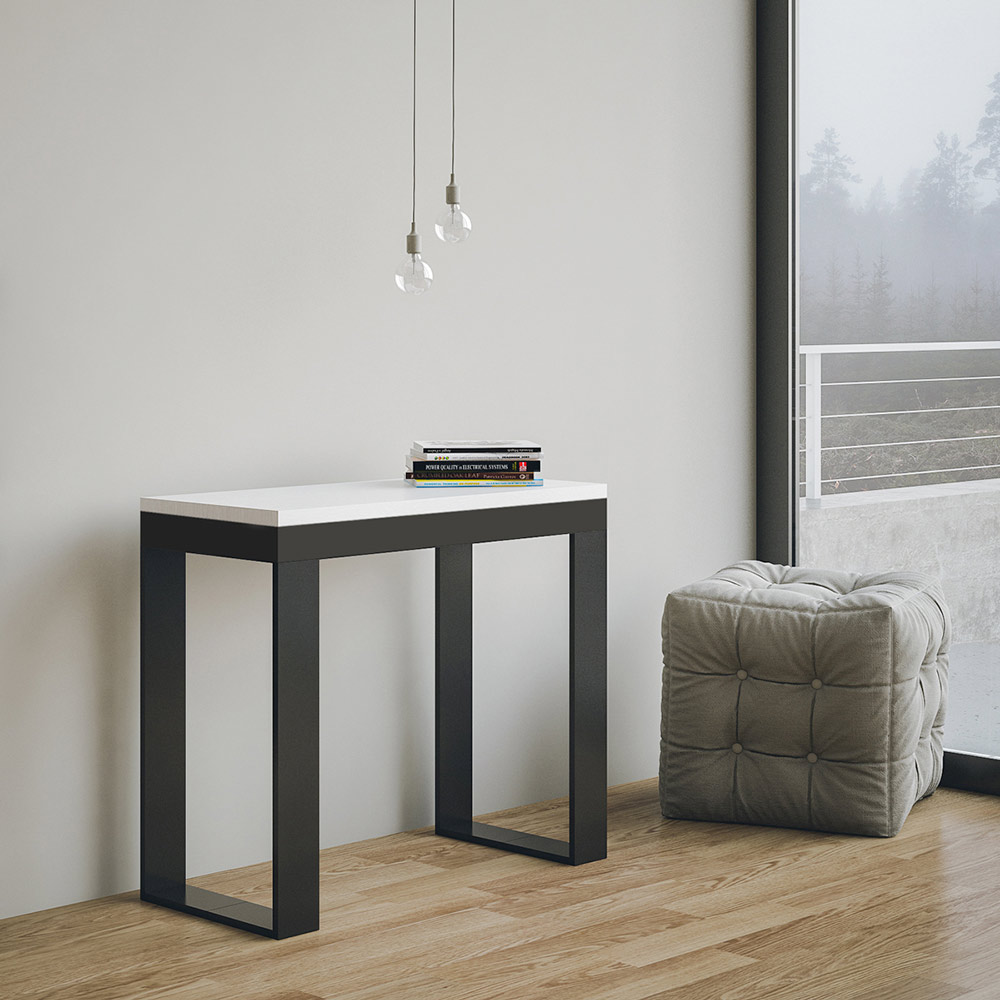 This extendable console table è an exemplar of contemporary design thought to combine elegance and practicality.