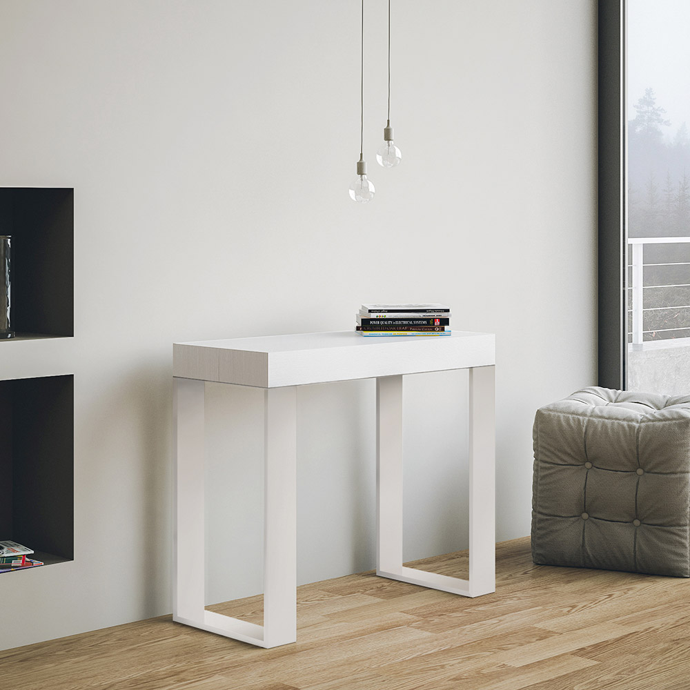 This extendable console table è an exemplar of contemporary design conceived to combine elegance and practicality.;
