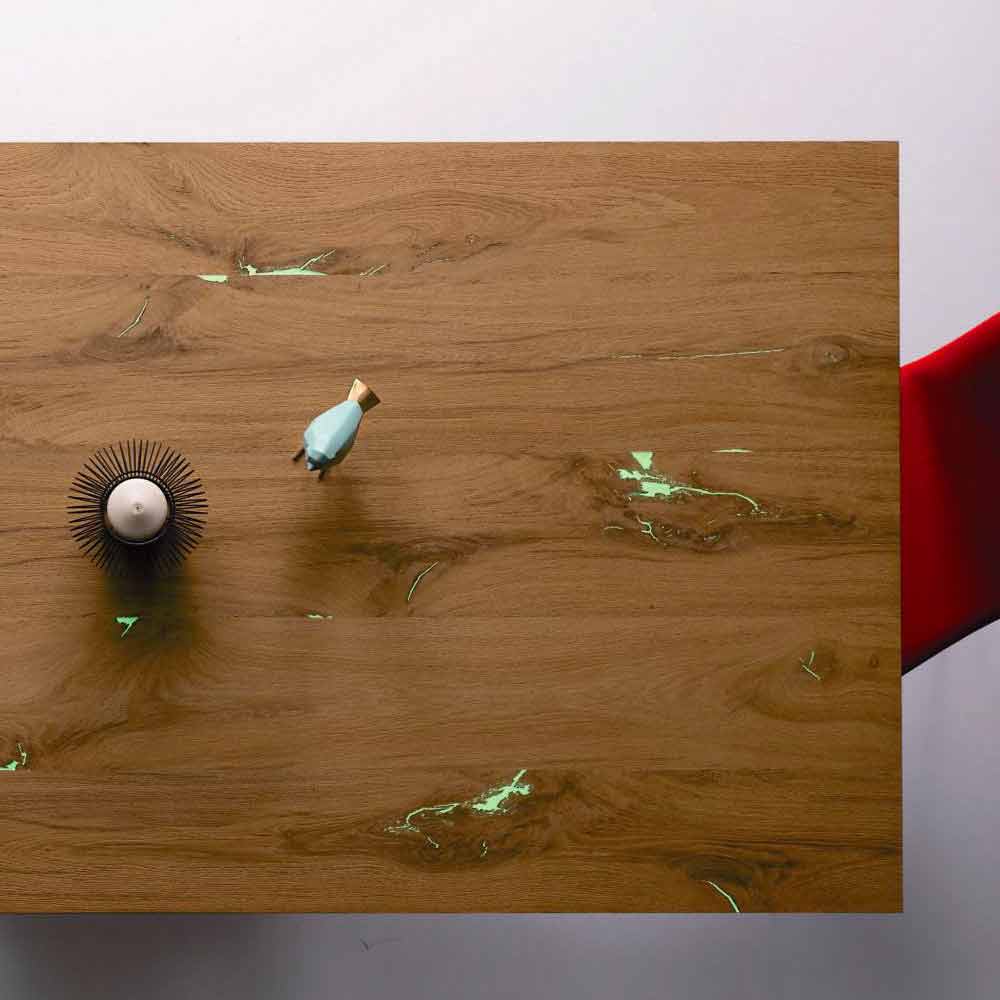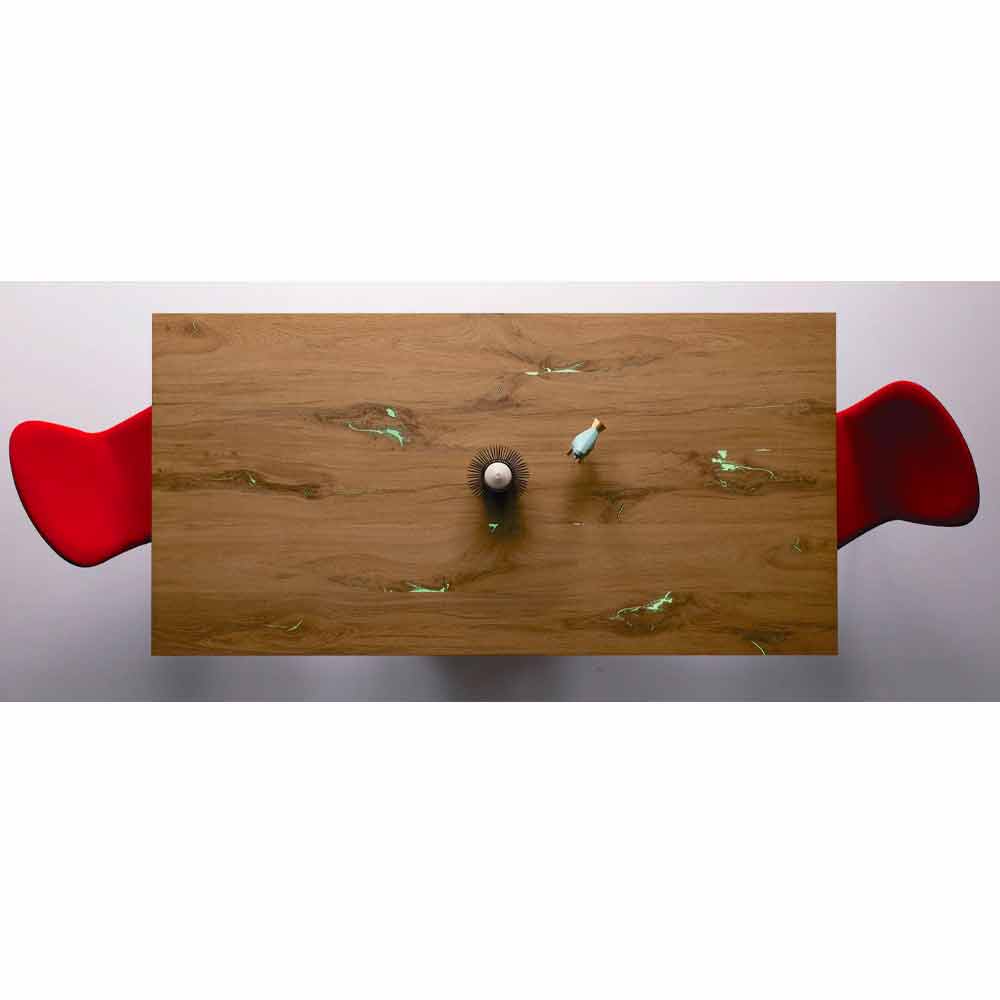 design thanks to the combination of materials and finishes used which makes it an ideal product for environments with a modern and refined style. The peculiarity of the table is undoubtedly given by the unusual structure of the two