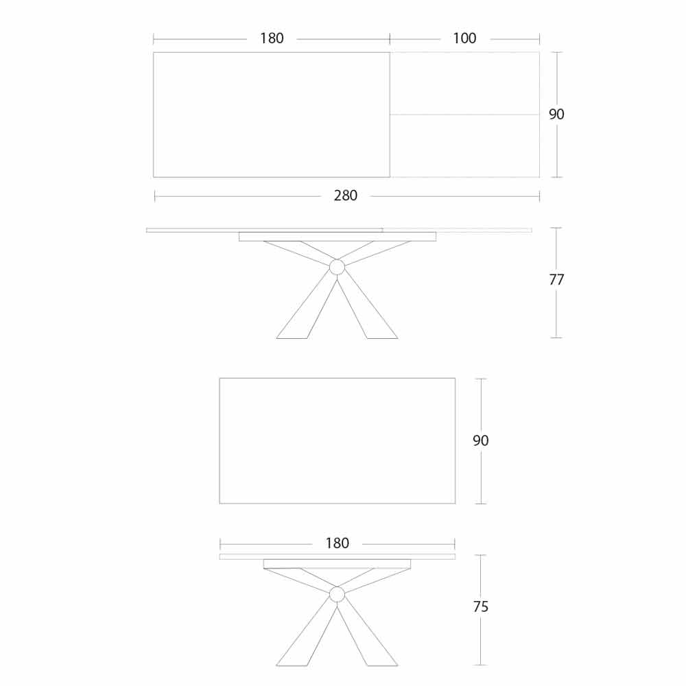 - W 180-280 x D 90 x H 77cm