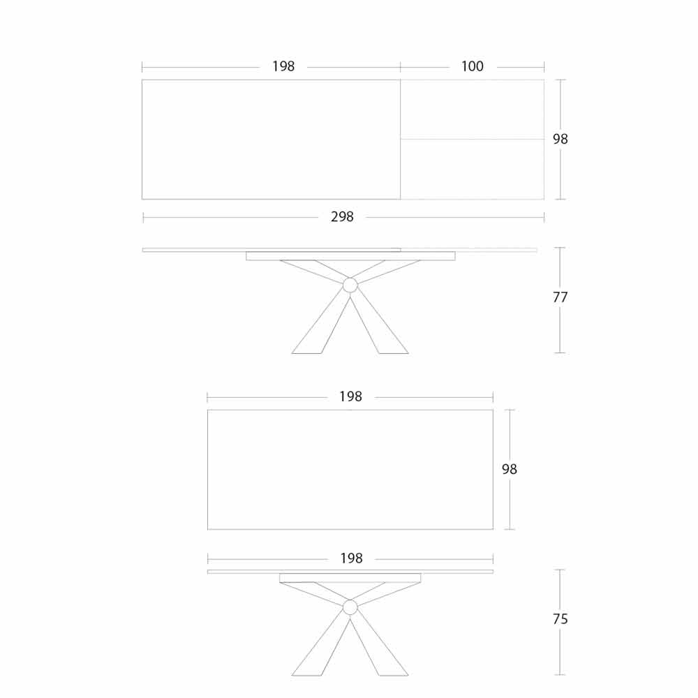 NB: when opening the table it is necessary to lift the extension, position it at the level of the top and, only then, open it.