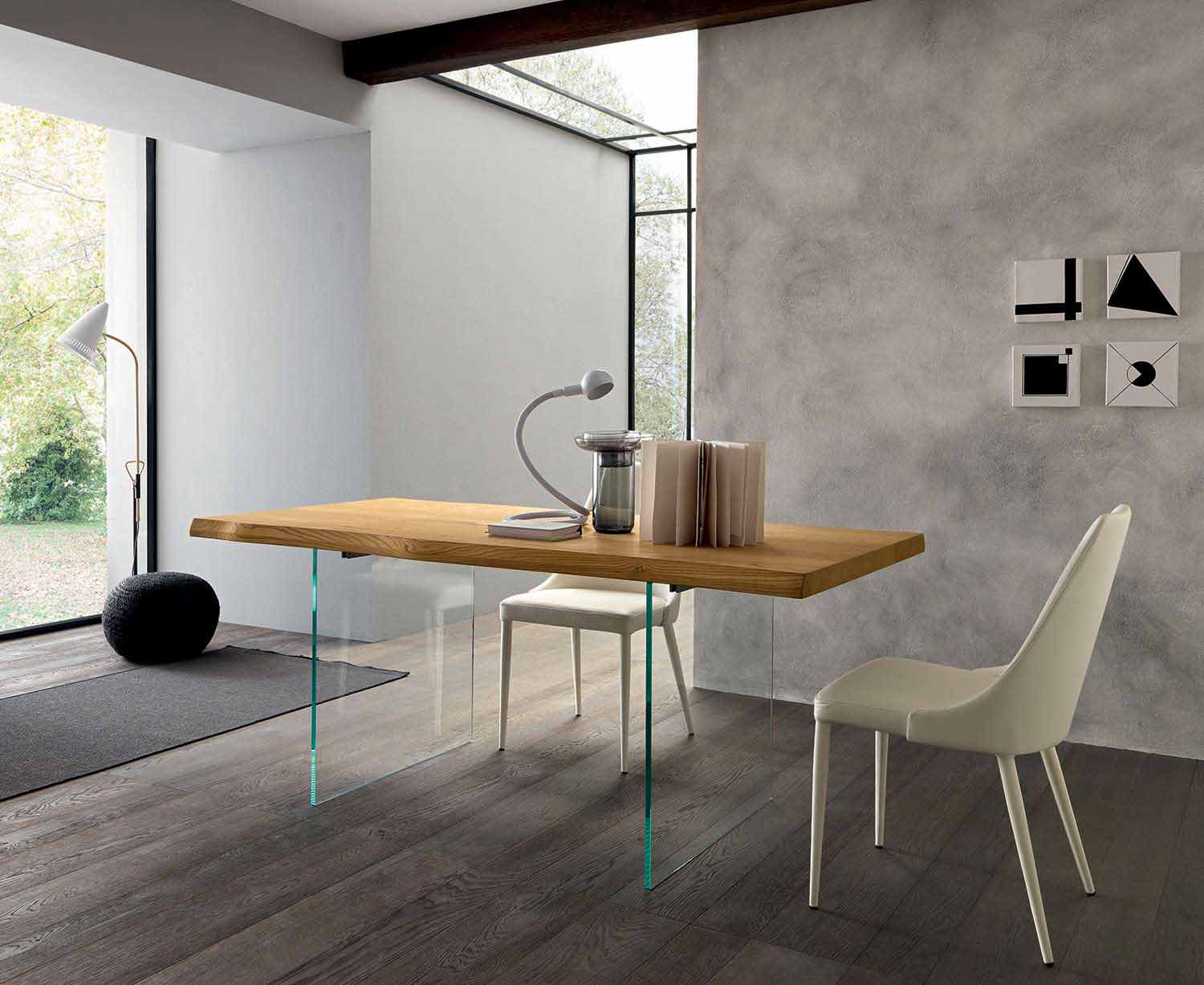 The table top can be customized with different sample finishes. Furthermore, it is also available in the version with straight edges.