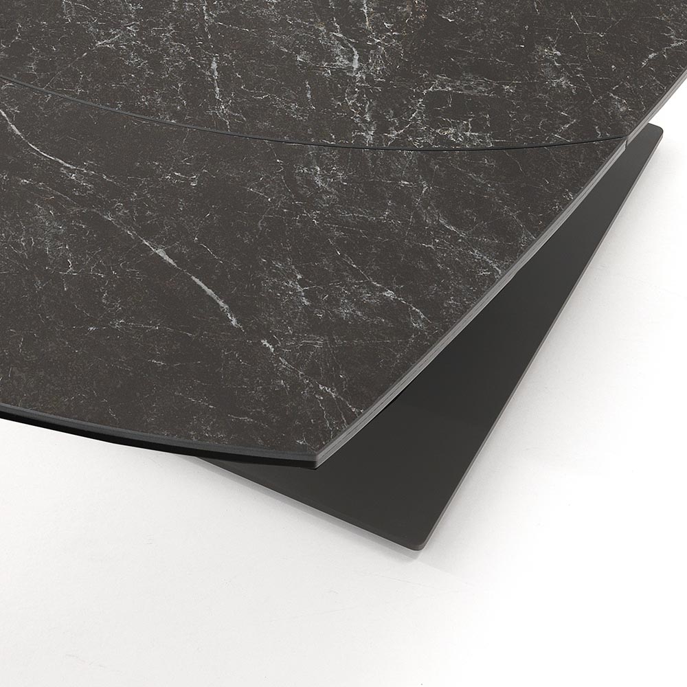 swivel mechanism , the table can reach a maximum length of 180 cm, thus allowing it to accommodate a greater number of guests for wonderful lunches and dinners in company. The perfect combination of the elegance of the ceramic and the imposing detail of the steel base creates a furnishing accessory with a