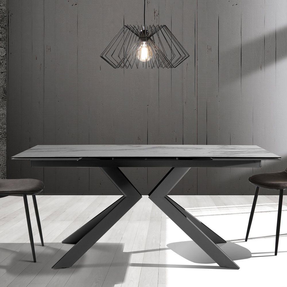Extendable dining table up to 240 cm in ceramic and grey painted metal.