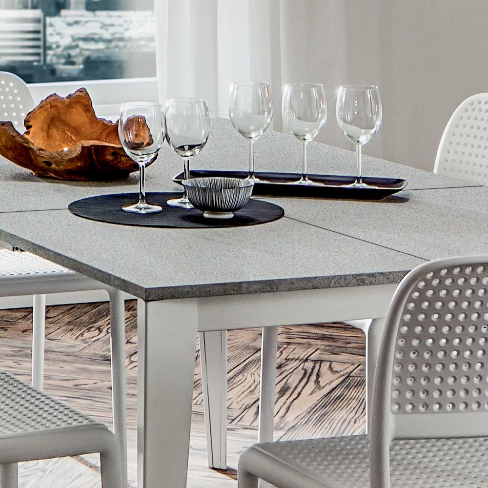 Extendable dining table with square top in hpl Made in Italy, high quality.