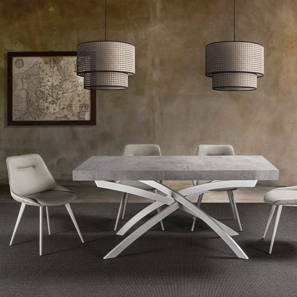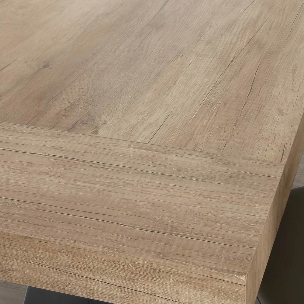 melamine wood top extendable up to a maximum of 260 cm thanks to the matching extensions positioned under the top. Precisely for this characteristic it is able to accommodate a greater number of guests opening in an extremely simple way and allowing an equally easy closing once the meal is over. Its design therefore combines