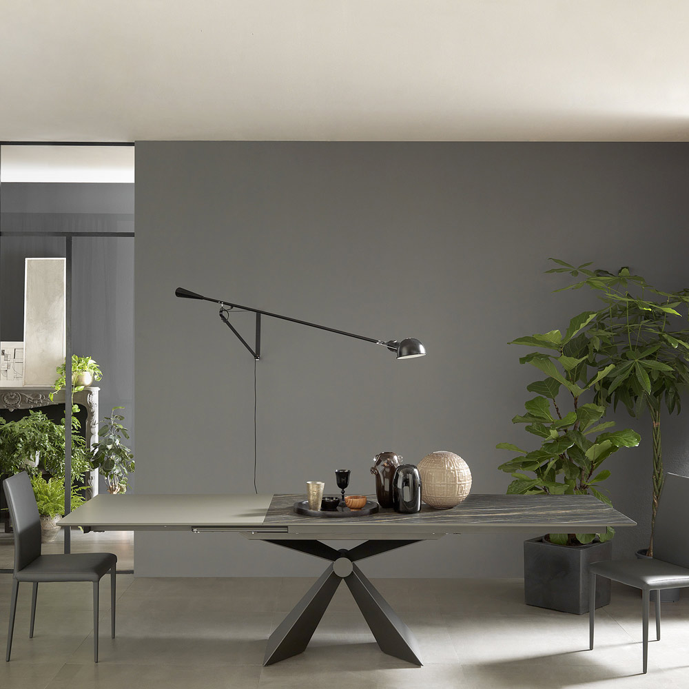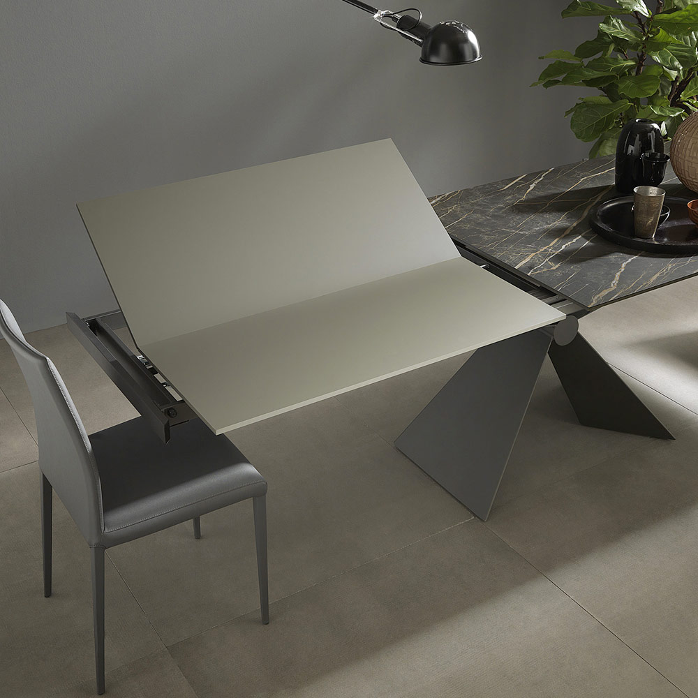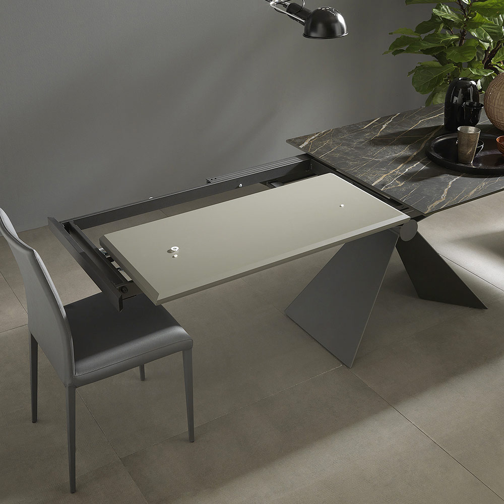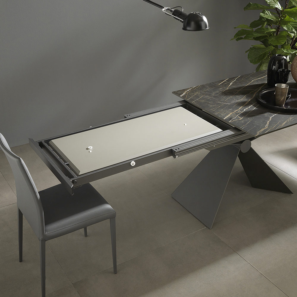 Modern extendable dining table in ceramic and metal Made in Italy.