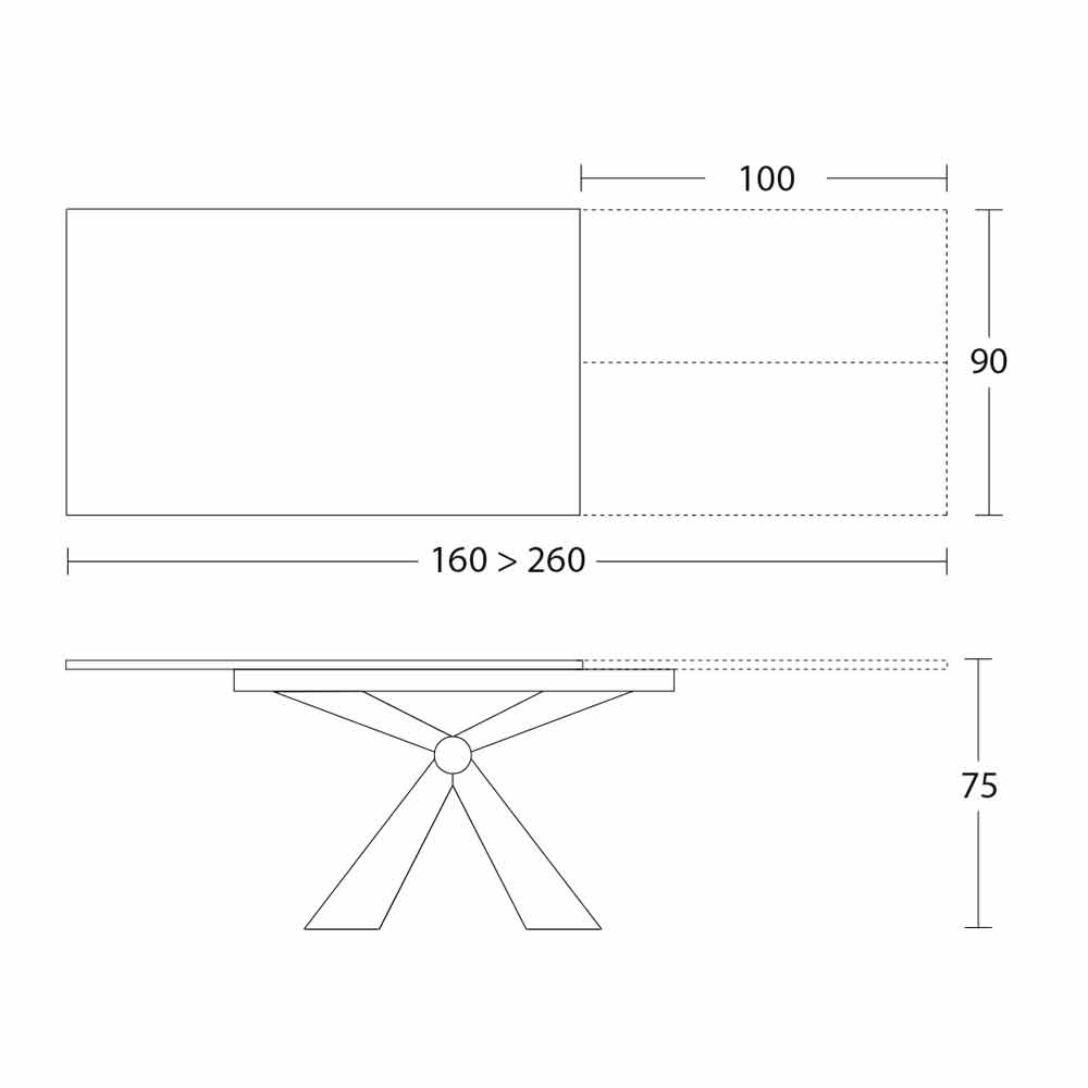 - W 160/260 x D 90 x H 75 cm;