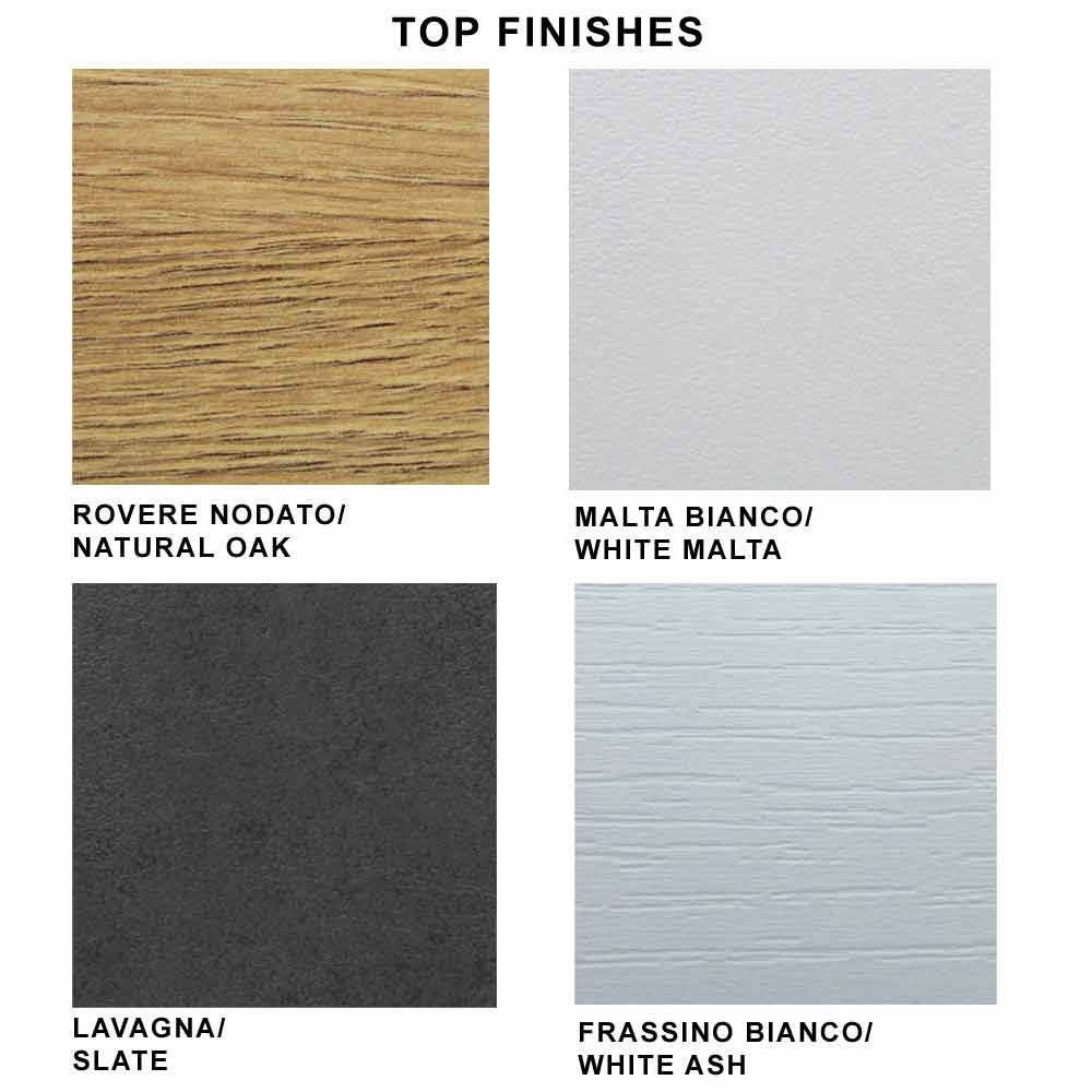Available top finishes:- knotted natural oak laminate - thickness 38mm;