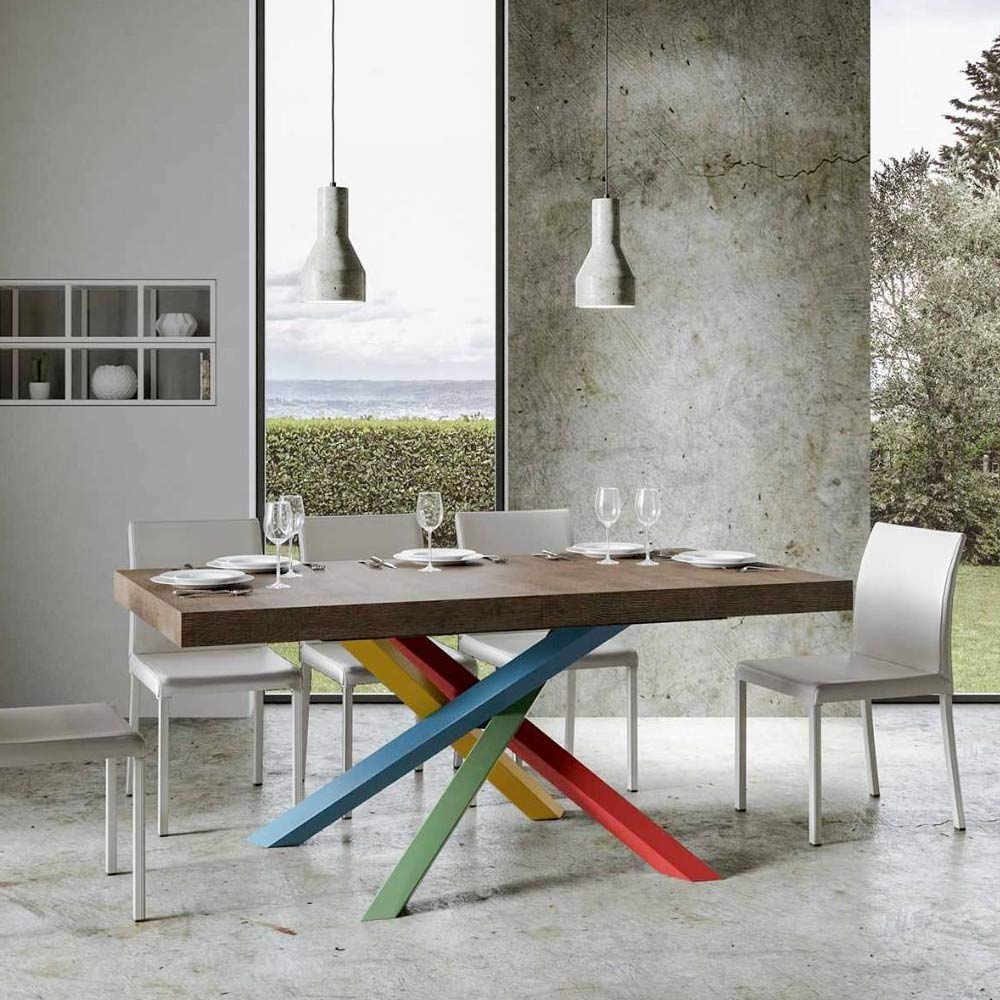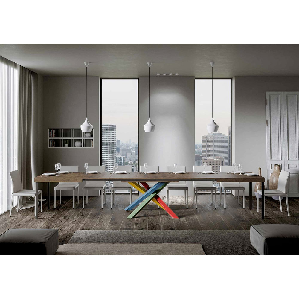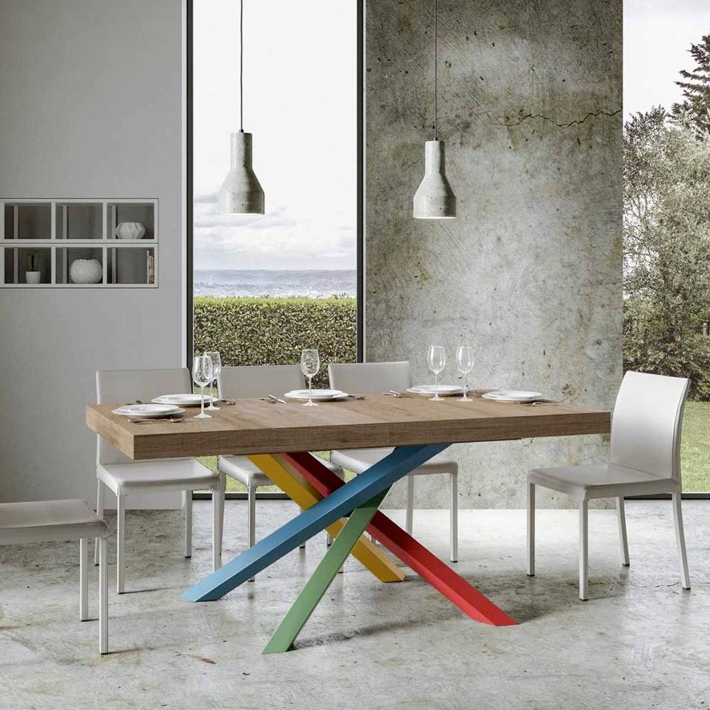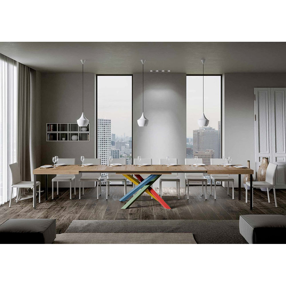 Discover the extendable table, a masterpiece of modern design that stands out for its unique silhouette and versatile functionality. The wood top enhances the brightness of spaces, offering a smooth and sturdy surface that invites daily use.Ā The table base ĆØ a true geometric spectacle, with crossed legs that intertwine in a play of colours.Ā The proposed combination ĆØ : Leg 1:Ā Carmine RedĀ (RAL 3002). Leg 2:Ā Yellowish GreenĀ (RAL 6018). Leg 3:Ā Distant BlueĀ (RAL 5023). Leg 4:Ā Signal YellowĀ (RAL 1003).Ā RAL colours are opaque.Ā This combination not only adds a touch of vitality to the design but also ensures stability&strong> and strength. The table extension mechanism ĆØ as simple as it is engineering, allowing this elegant piece of furniture to be transformed from a practical table for four to a cosy area for hosting larger dinners and meetings.