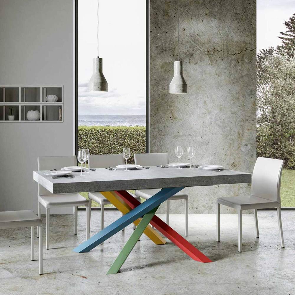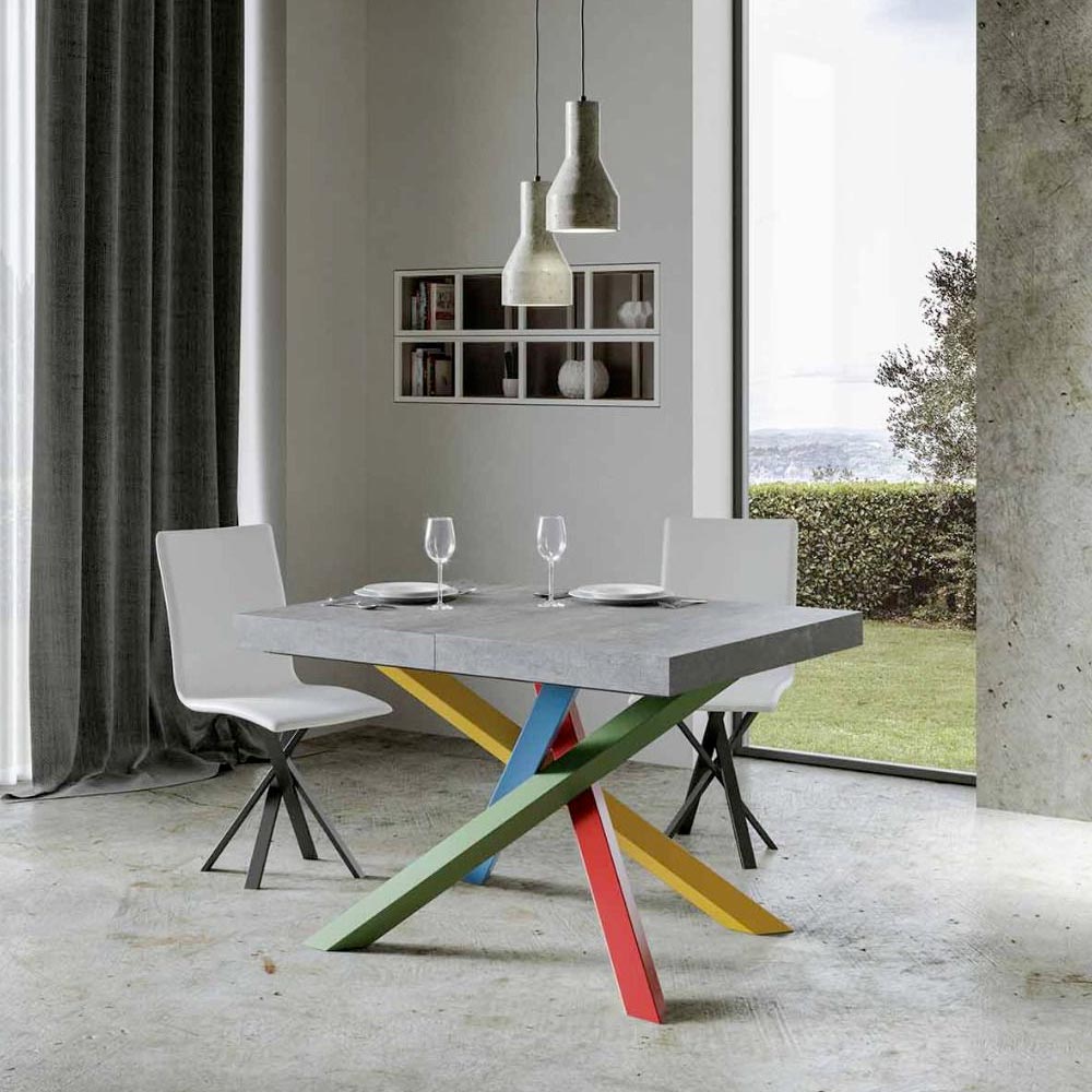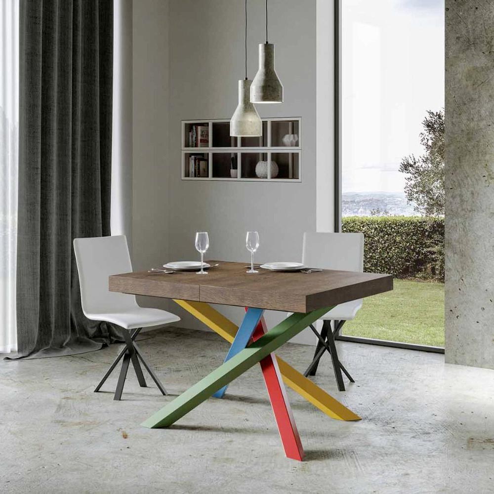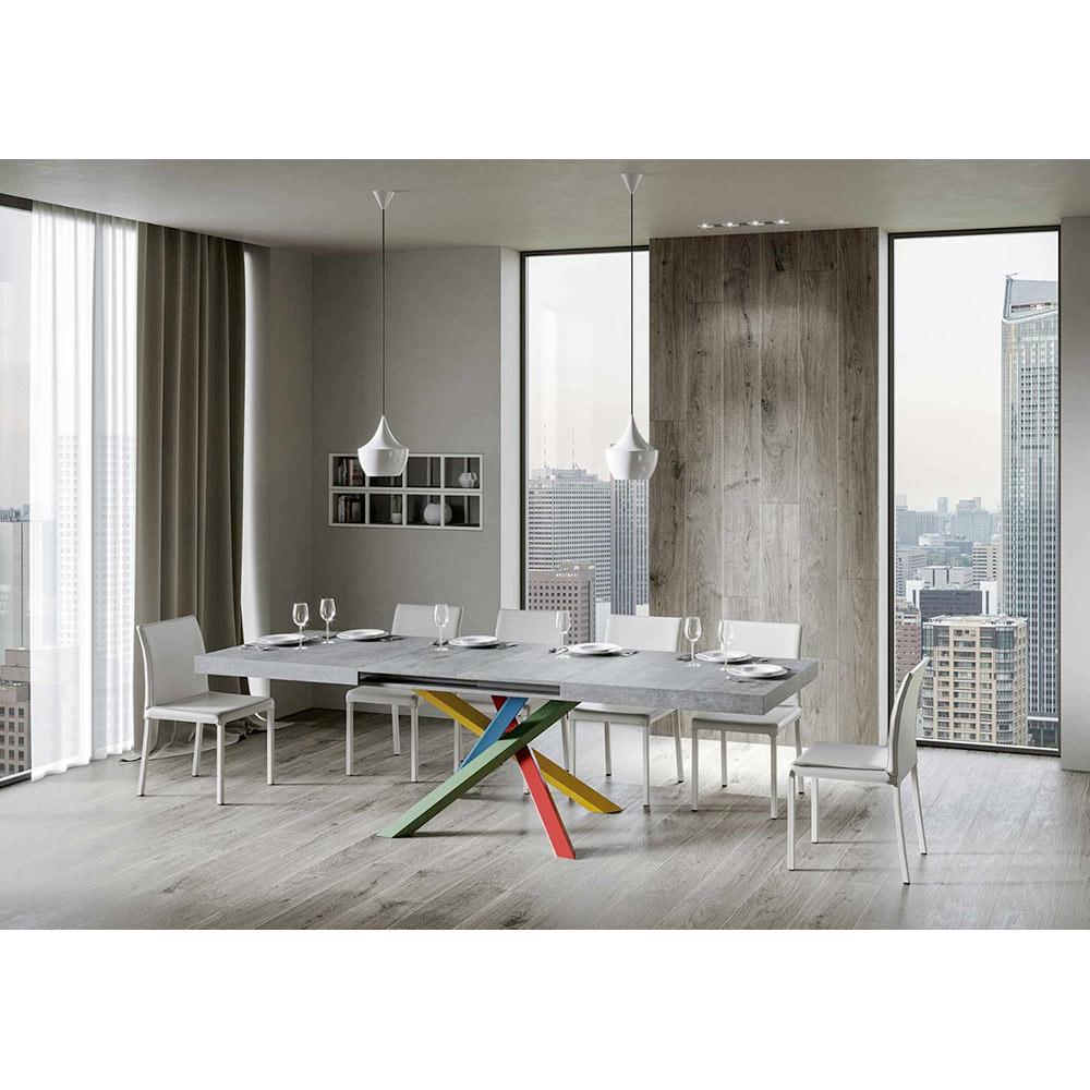 Discover the extendable table, a masterpiece of modern design that stands out for its unique silhouette and versatile functionality. The wood top enhances the brightness of spaces, offering a smooth and sturdy surface that invites daily use.Ā The table base ĆØ a true geometric spectacle, with crossed legs that intertwine in a play of colours.Ā The proposed combination ĆØ : Leg 1:Ā Carmine RedĀ (RAL 3002). Leg 2:Ā Yellowish GreenĀ (RAL 6018). Leg 3:Ā Distant BlueĀ (RAL 5023). Leg 4:Ā Signal YellowĀ (RAL 1003).Ā RAL colours are opaque.Ā This combination not only adds a touch of vitality to the design but also ensures stability&strong> and strength. The table extension mechanism ĆØ as simple as it is engineering, allowing this elegant piece of furniture to be transformed from a practical table for four to a cosy area for hosting larger dinners and meetings.
