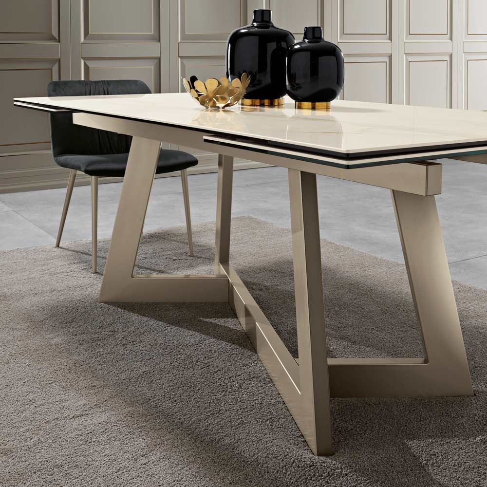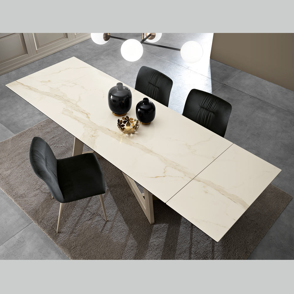 laminam glass ceramic top and extensions (13 mm thick), pairs of metal telescopic guides