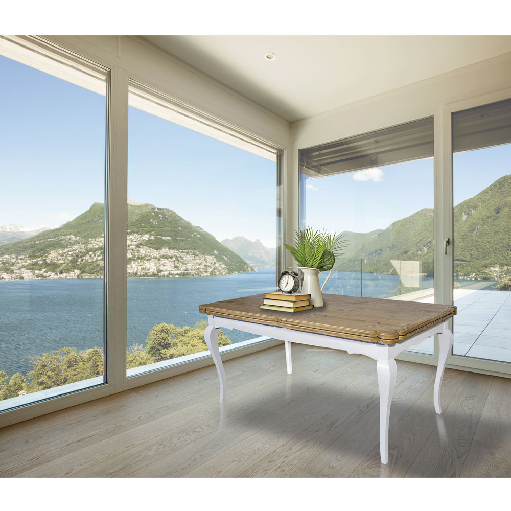 Indoor extendable table in Nordic fir with Made in Italy shaped corners.