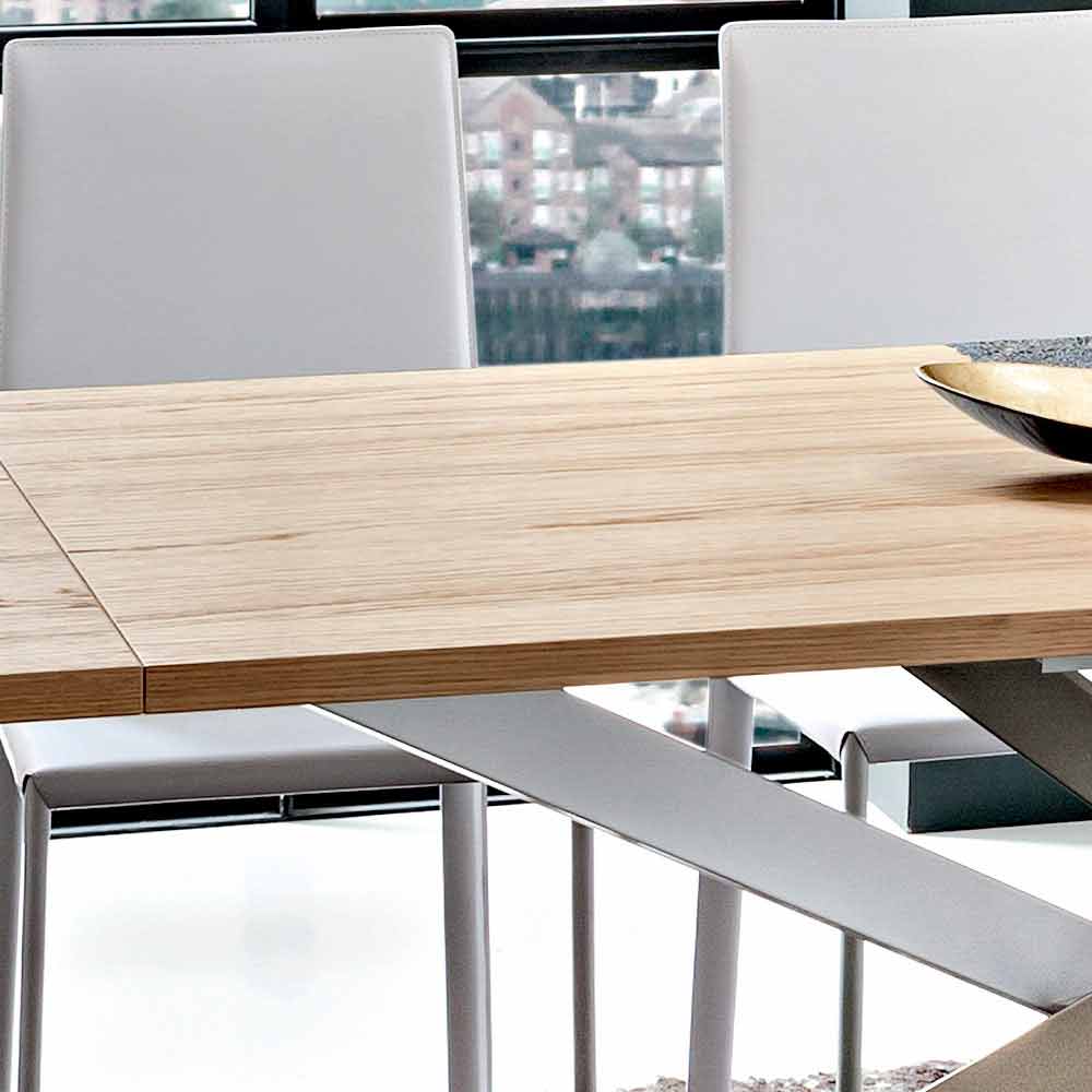 Extendable kitchen table with oak veneered top and metal legs Made in Italy.