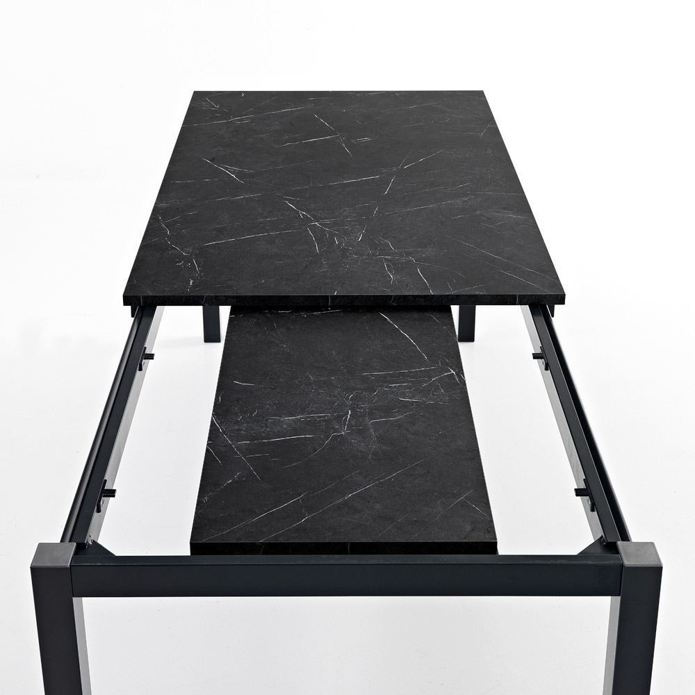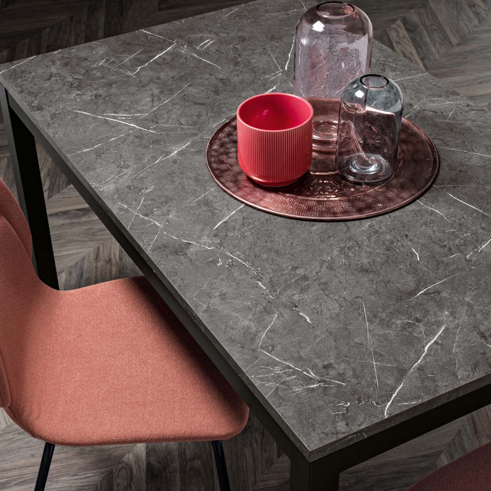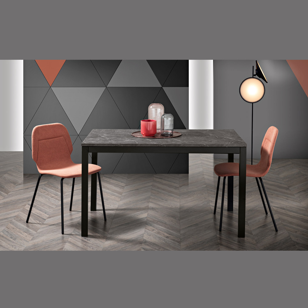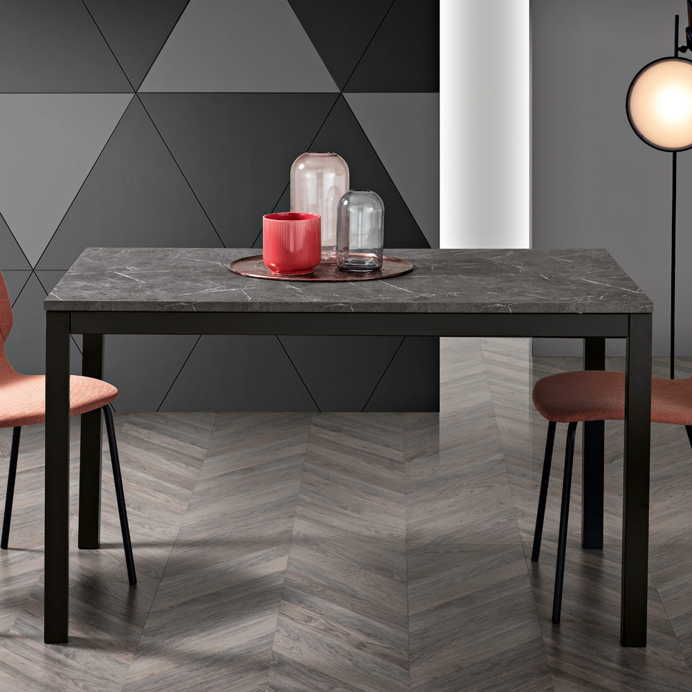 Made in Italy. Discover the contemporary charm and timeless sophistication of this dining table . A majestic melamine surface supported by a sturdy structure with elegant metal legs . Transform every meal into a special occasion.