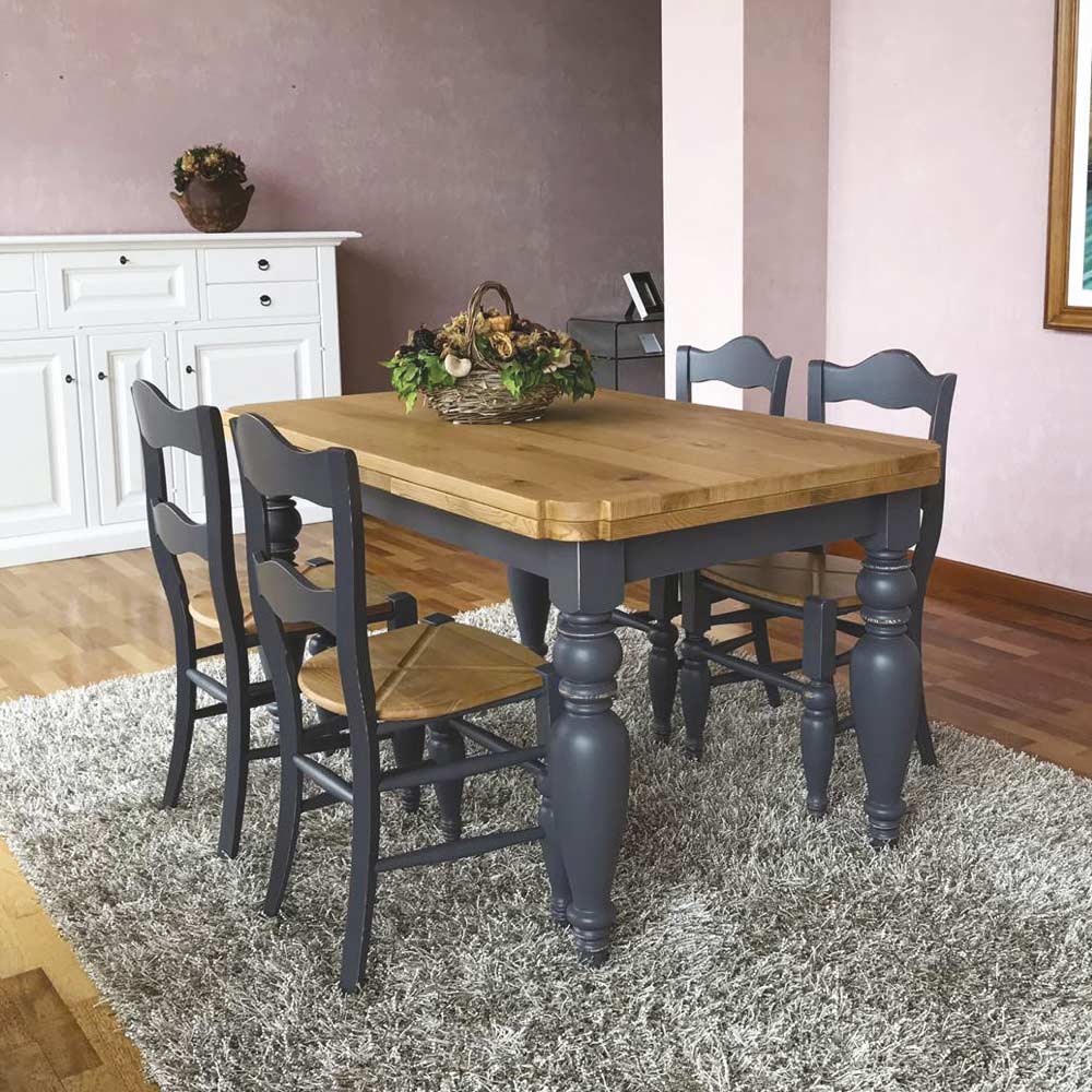 - Natural knotted oak top + "worn effect" graphite lacquered base