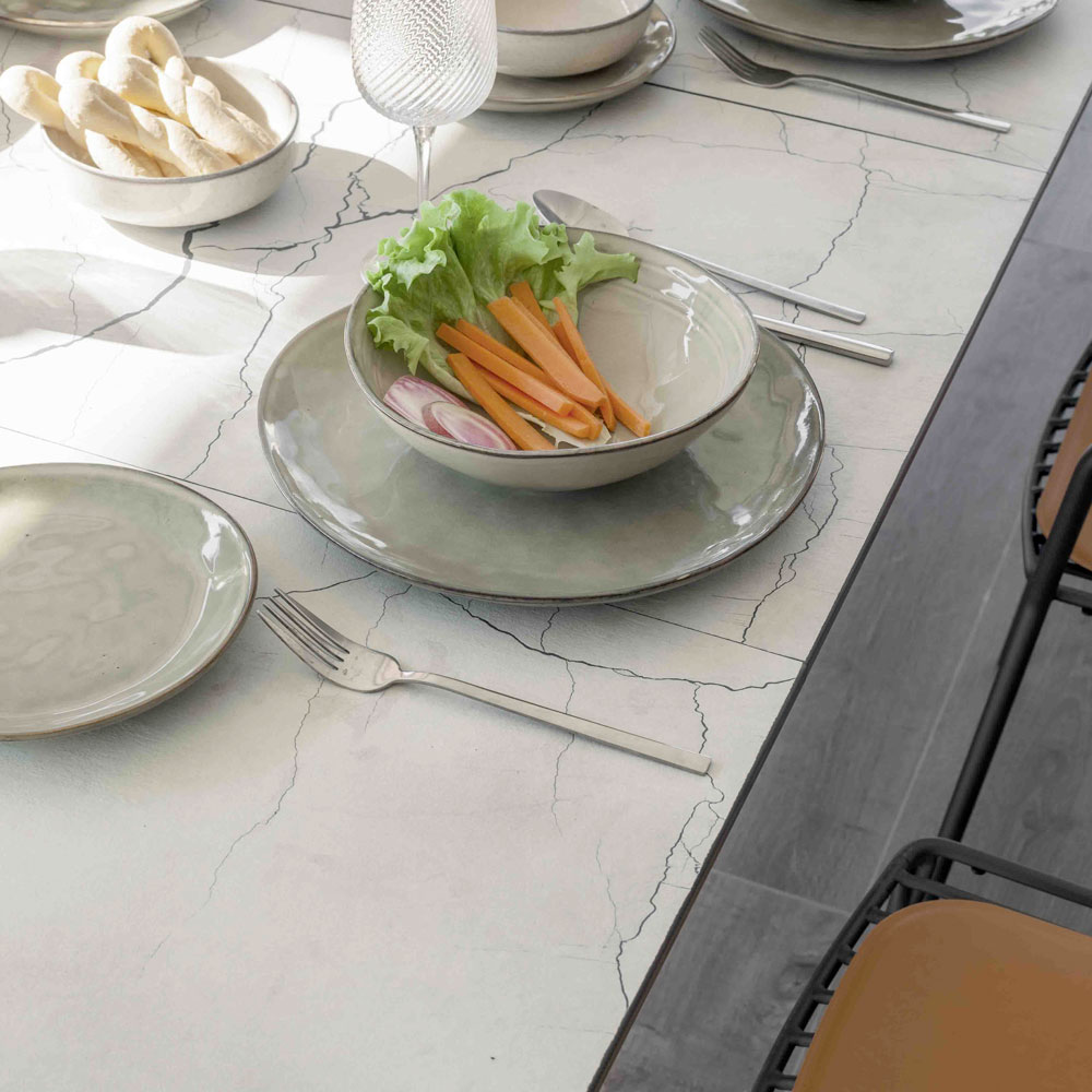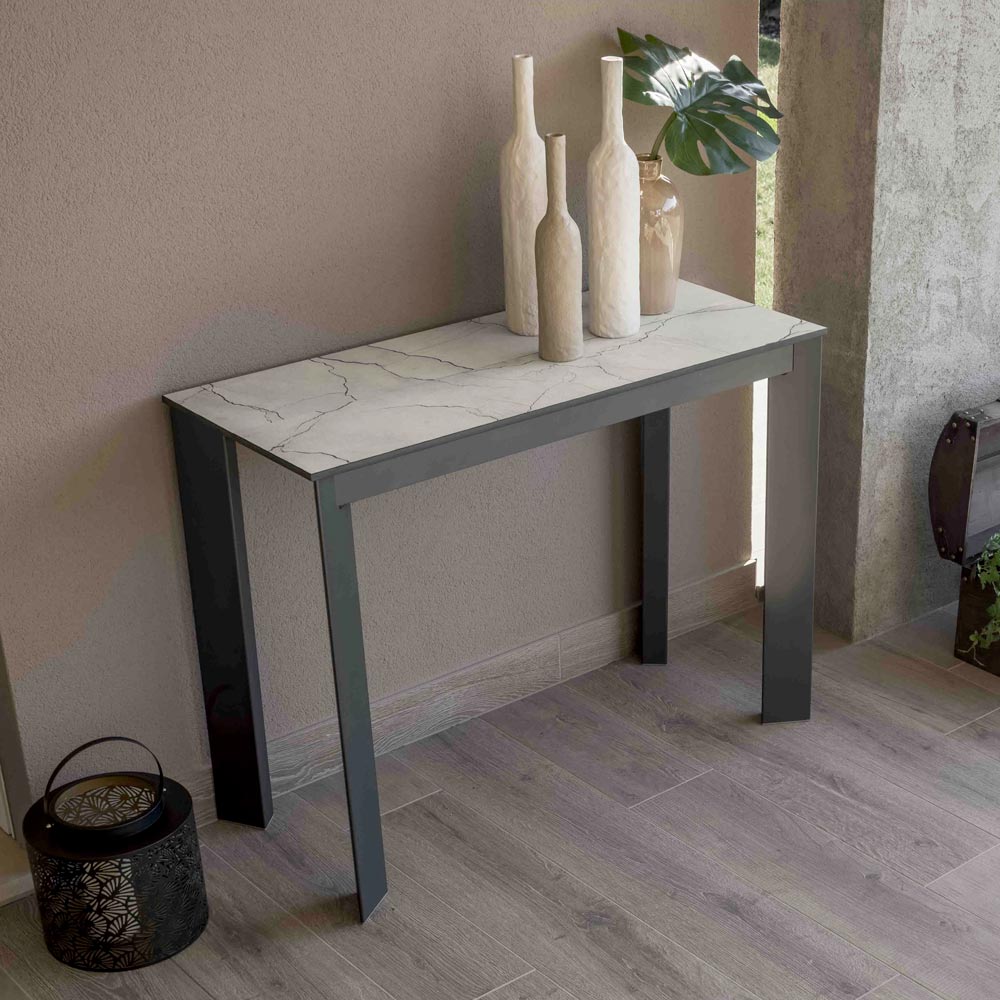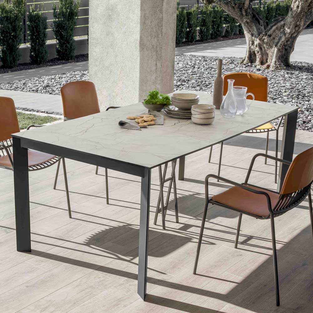 This extendable console is the perfect choice for those who want to combine functionality and style in their garden or terrace. Made with high-quality materials, the console features a hpl top, which not only offers an elegant look but is also resistant to atmospheric agents, ensuring durability over time.