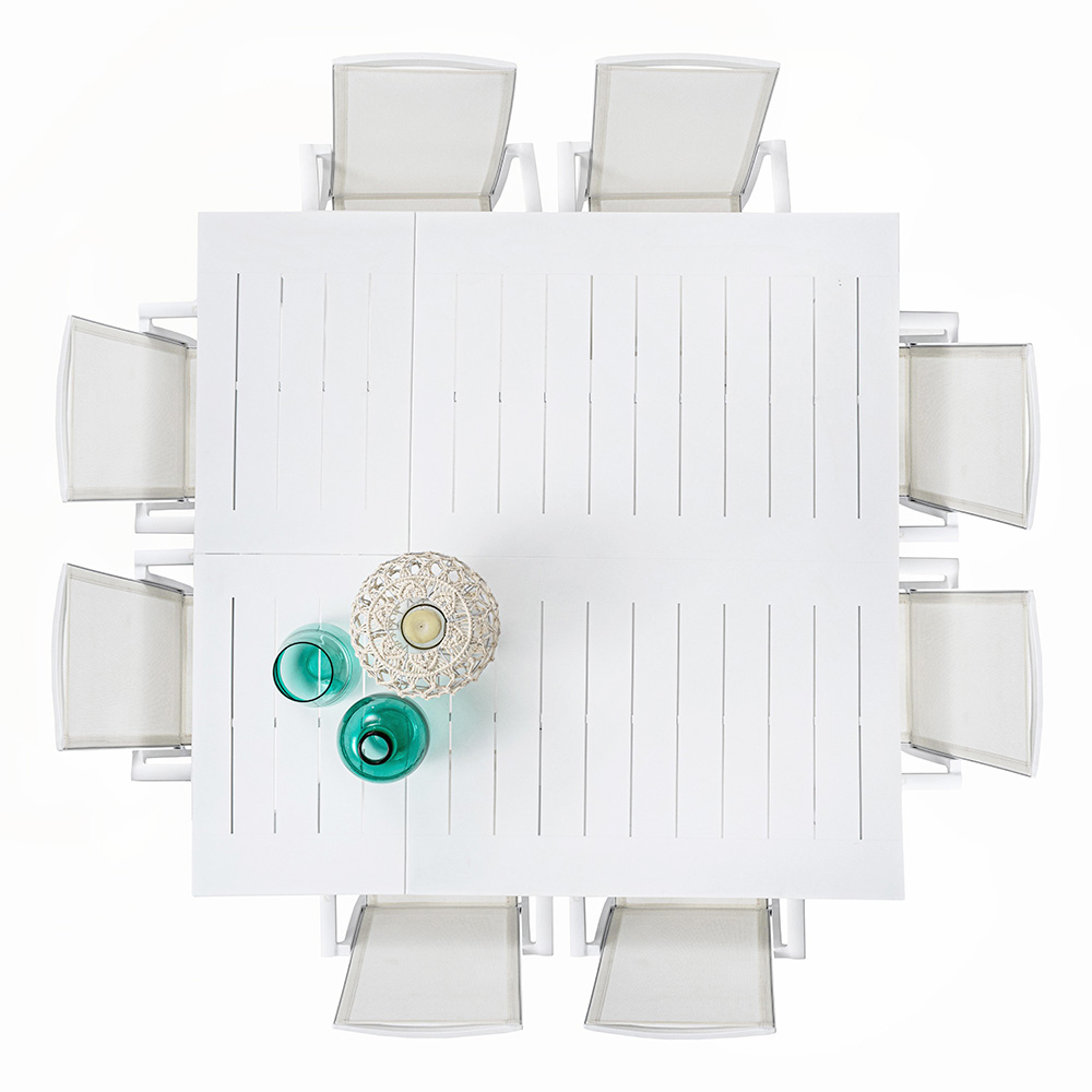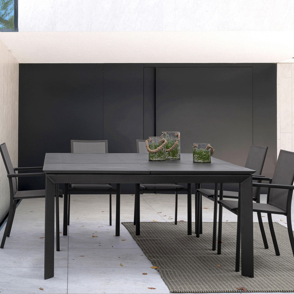 Extendable outdoor dining table in high quality painted aluminium.