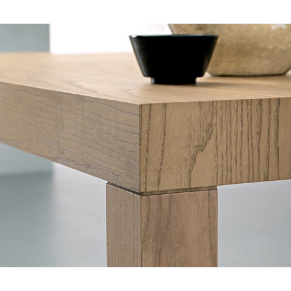 This table is a true example of minimalist design that doesn't sacrifice strength or functionality. Crafted from wood with a natural finish that enhances the material's texture and warmth, this table stands out for its solid structure and the elegance of its pure, clean lines. The square shape and wide top create a welcoming and convivial atmosphere, perfect for decorating your dining room with style.