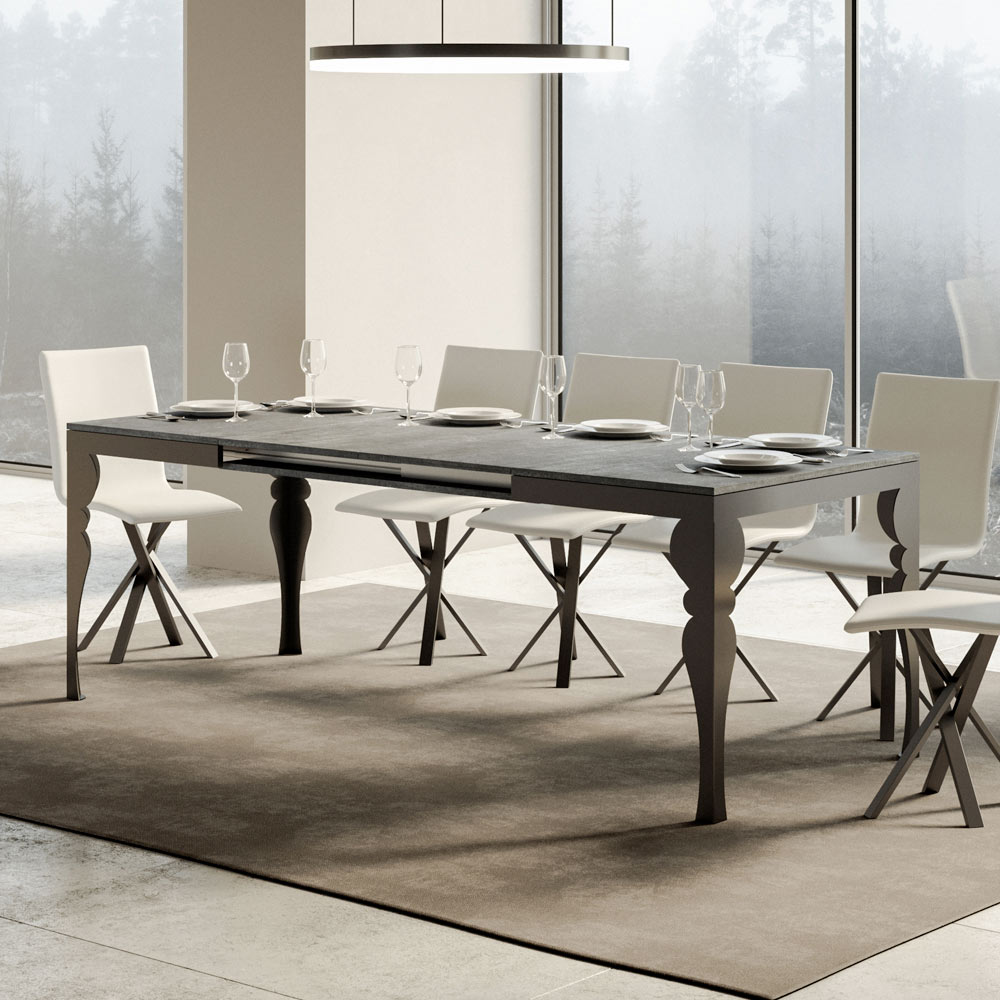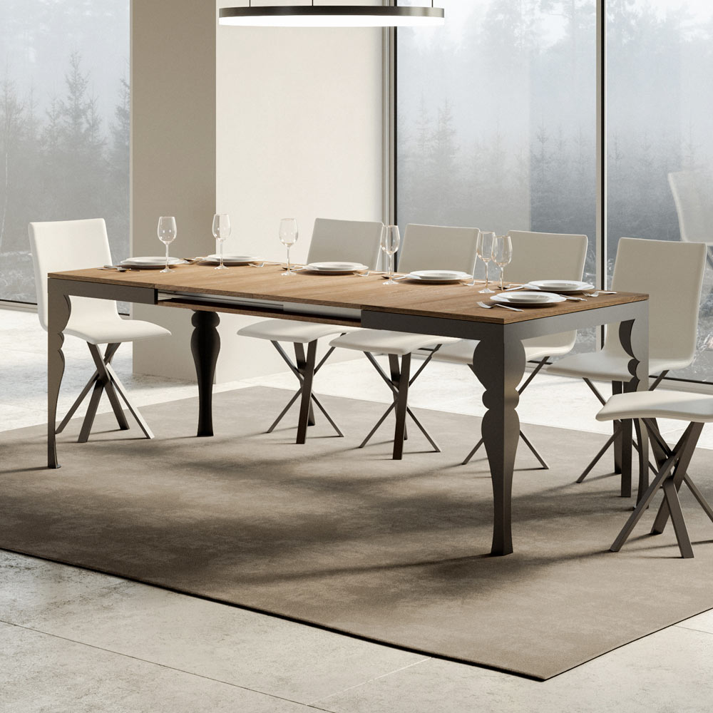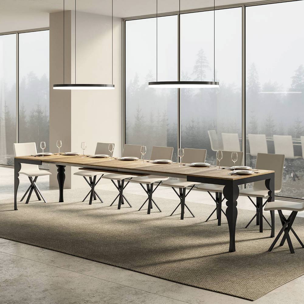 ThisĀ extendable table ĆØ a specimen of exquisite craftsmanship, where traditional design meets modern functionality. With its turned legs in an elegant anthracite, this table evokes the classic style, but with a touch of modern sophistication thanks to its wooden top.