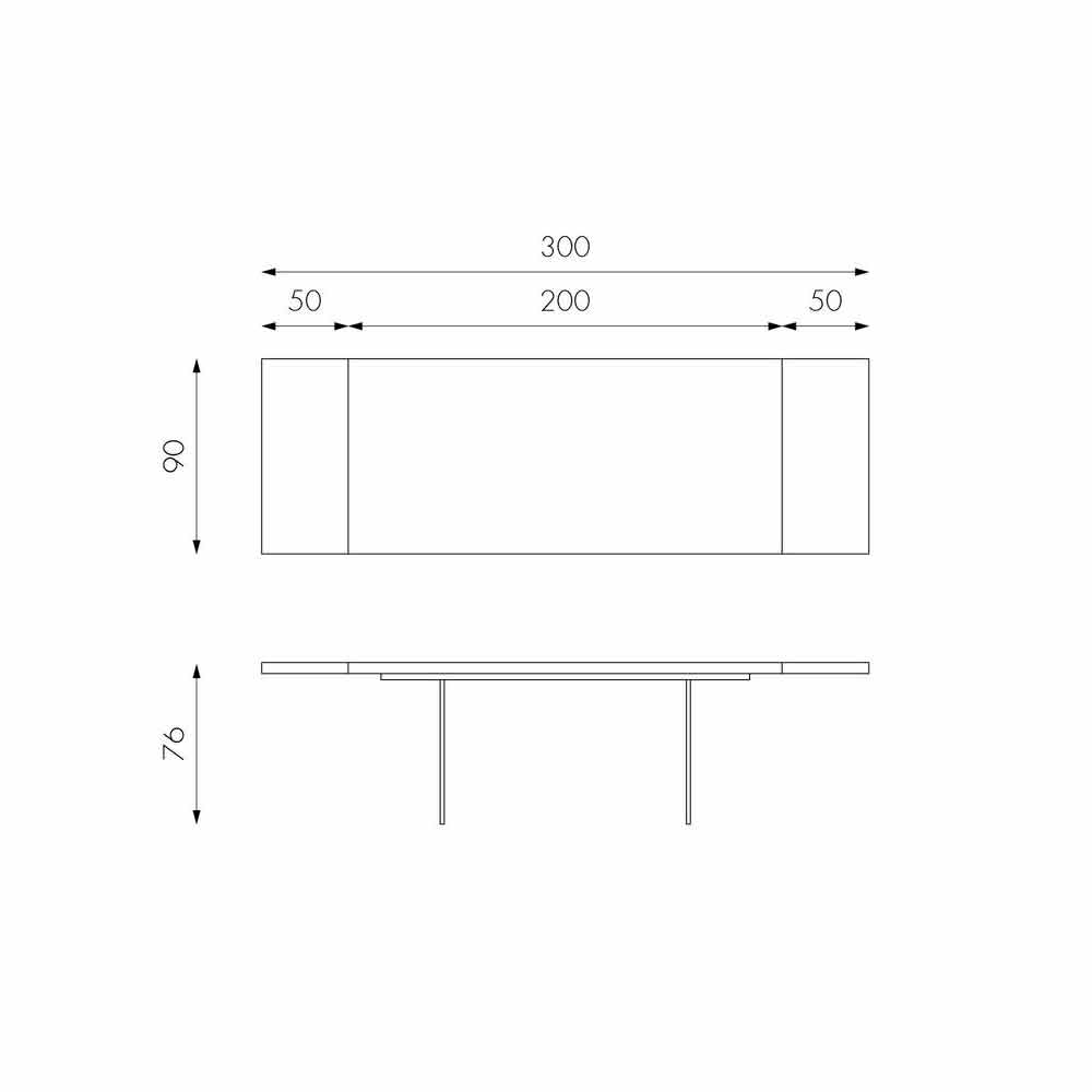 L200/300x D100x H 76cm; n° 2 extensions of 50 cm each