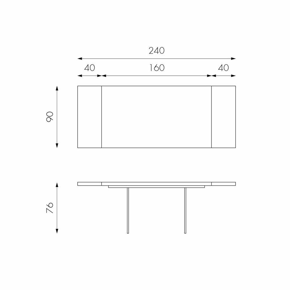 L160/240x D 90x H 76cm; n° 2 extensions of 40 cm each