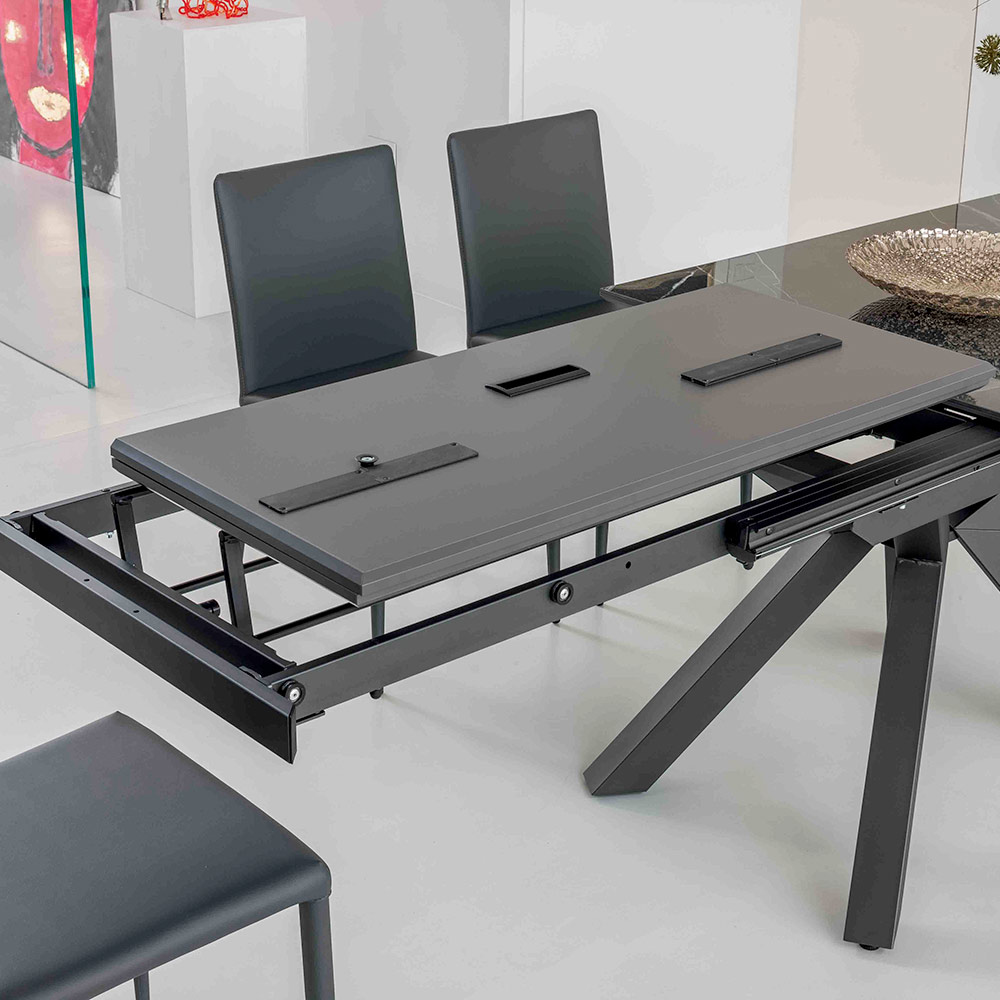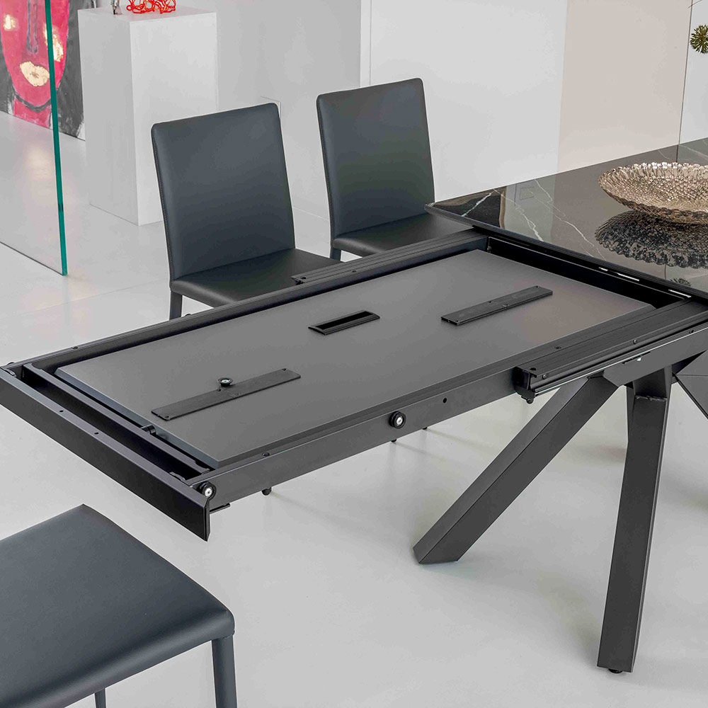 The table represents the perfect synthesis between cutting-edge engineering and aesthetic design. This is not simply an extendable table, but a functional work of art, designed for those who do not want to compromise between style and space.