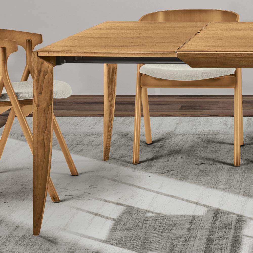 solid ash wood legs. A furnishing accessory entirely produced in Italy and characterized by an aesthetic characterized by an always refined, unique and innovative design. The combination of the chosen materials enriches this dining table with a