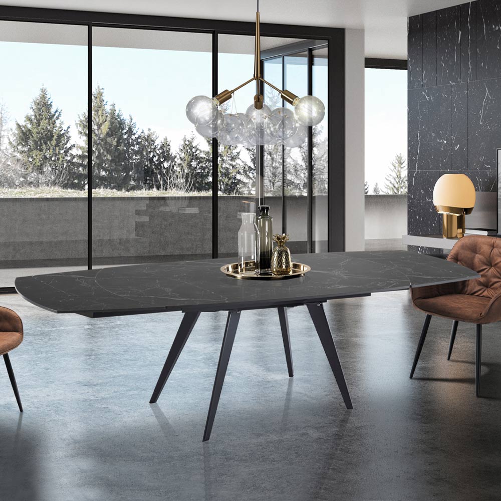 Available finishes:- ceramic top with matt white marble finish, matt black base