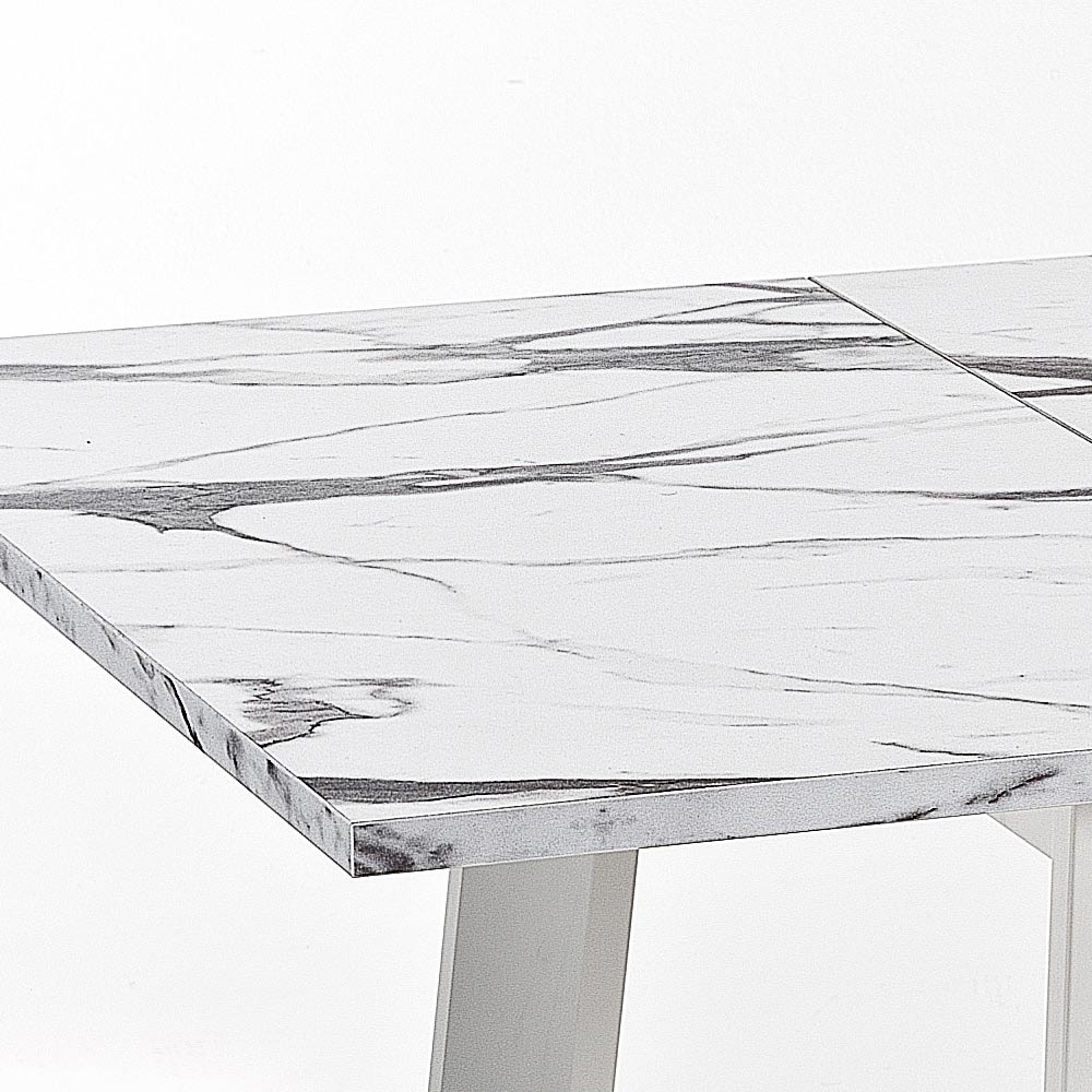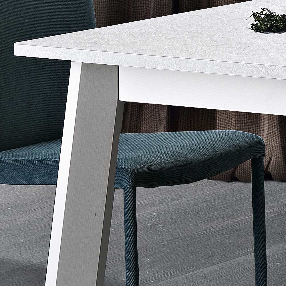 Extendable dining table composed of a melamine structure, legs in matt white lacquered solid beech wood and a 22 mm thick melamine top. The innovative design of the base elegantly coordinates with the shape of the top, almost forming a "sculpture" dedicated to our home. Simple and functional, it is adaptable to any environment, from classic to modern and gives every room in the house a touch of style and design .
