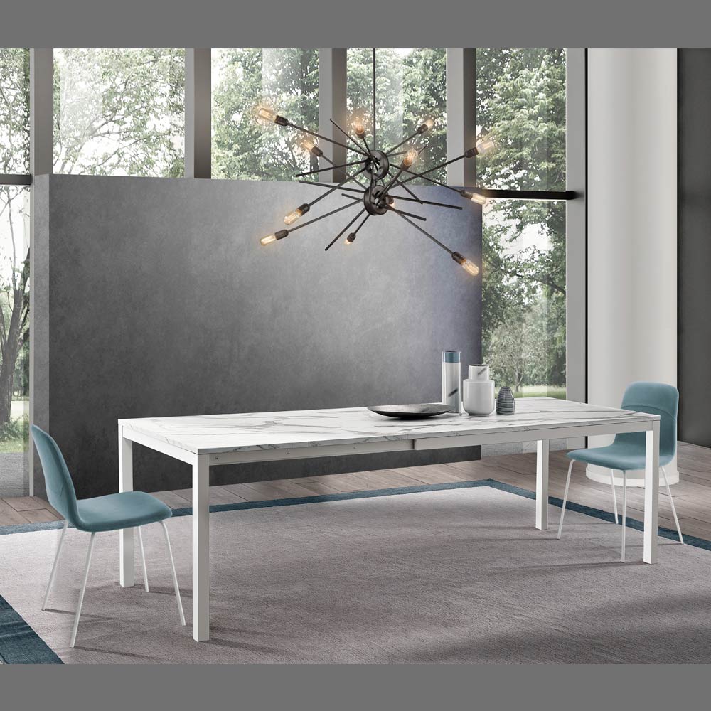 Extendable table to 260 cm with melamine top in Calacatta finish - Shaila