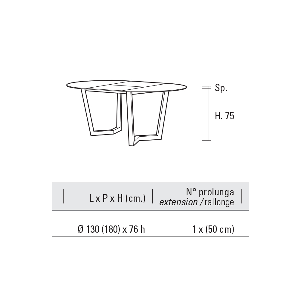 Extendable Table Up to 180 cm Round Hpl Laminated Made in Italy - Bastiano