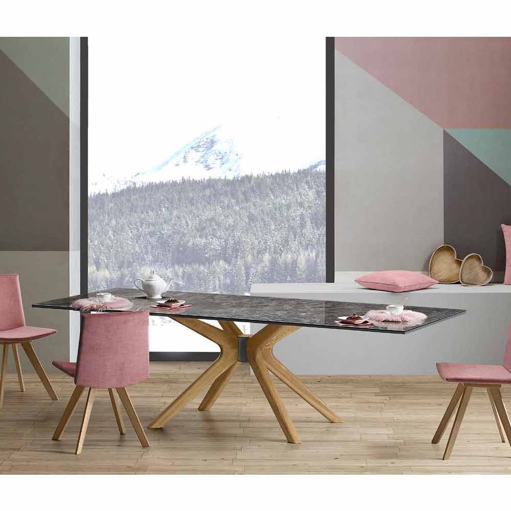 dining table has a 2 cm thick marble-effect stoneware top that can be extended up to a maximum length of 260 cm thanks to the presence of 2 40 cm removable head extensions that allow it to accommodate up to 14 people for lunches and dinners company. The structure of this wonderful piece of furniture is instead formed by a support in MDF and a base in natural finish oiled ash wood which represents the element that gives solidity and strength.